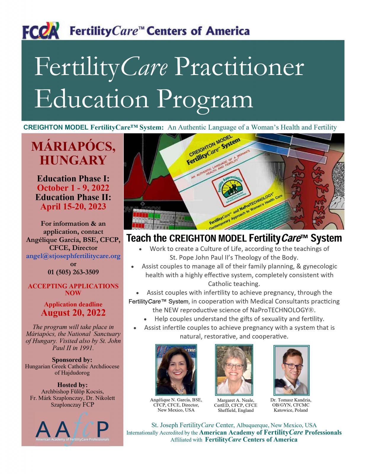Egyedülálló módon és első alkalommal rendezik meg Magyarországon idén októbertől a Creighton-féle családtervezési módszer oktatóképzését. A képzésnek Nemzeti Kegyhelyünk, Máriapócs ad majd otthont 2022. október 1-9. és 2023. április 15-20. között.