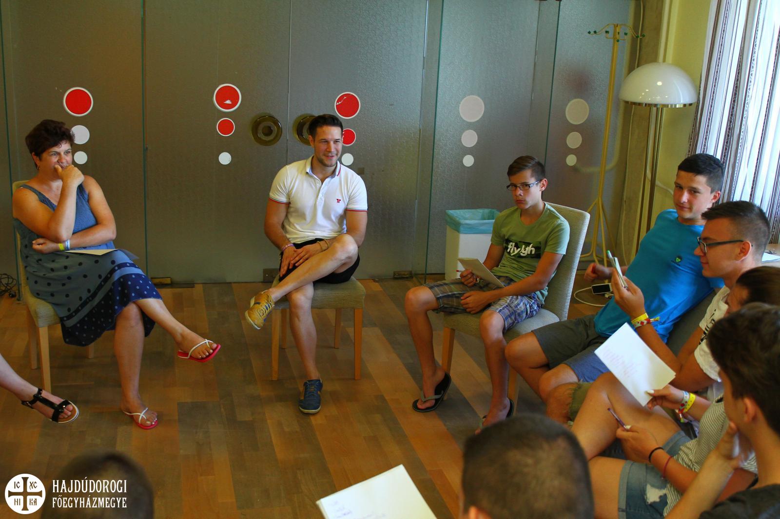 Egy másik teremben a fiatal felnőtteknek tartott érdekes önismereti előadást Soltész Ian tréner: arra is választ kaptak önmaguktól, hogy mit is tanultak magukról az elmúlt években?