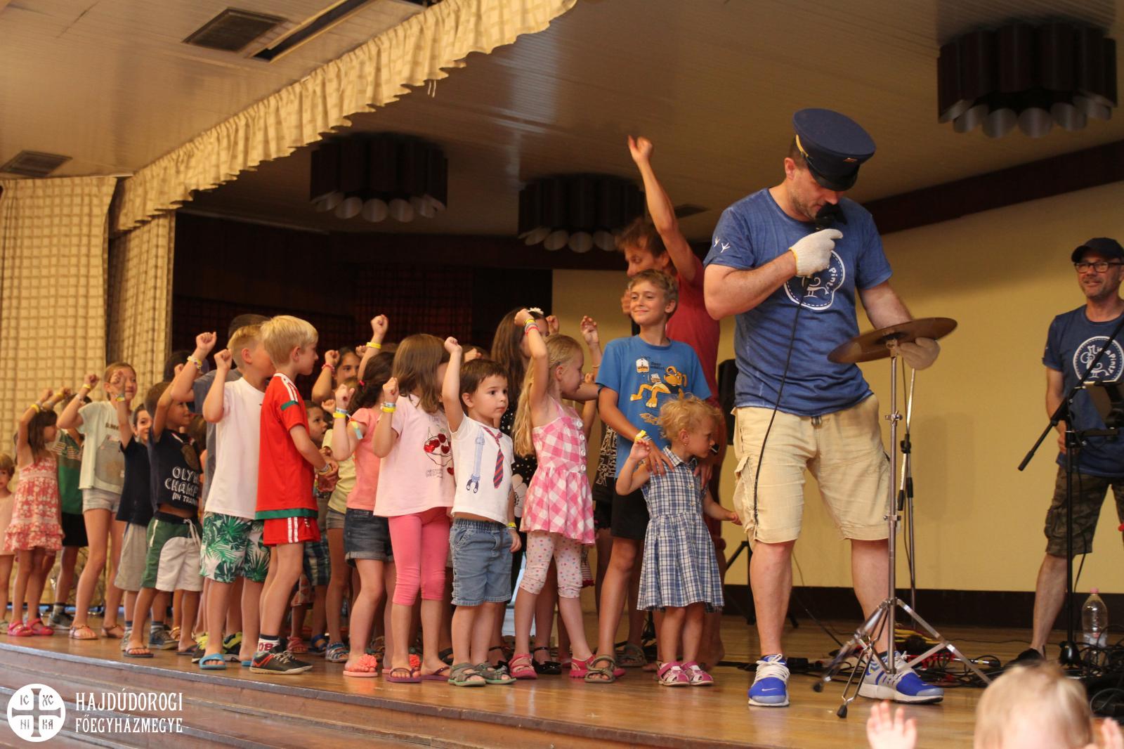 Még a vacsora előtt vecsernyét tartott Terdik János atya, majd a közös esti étkezés után jöhetett a mozgás: a MintaPinty zenekar igyekezett táncra perdíteni a gyerekeket.