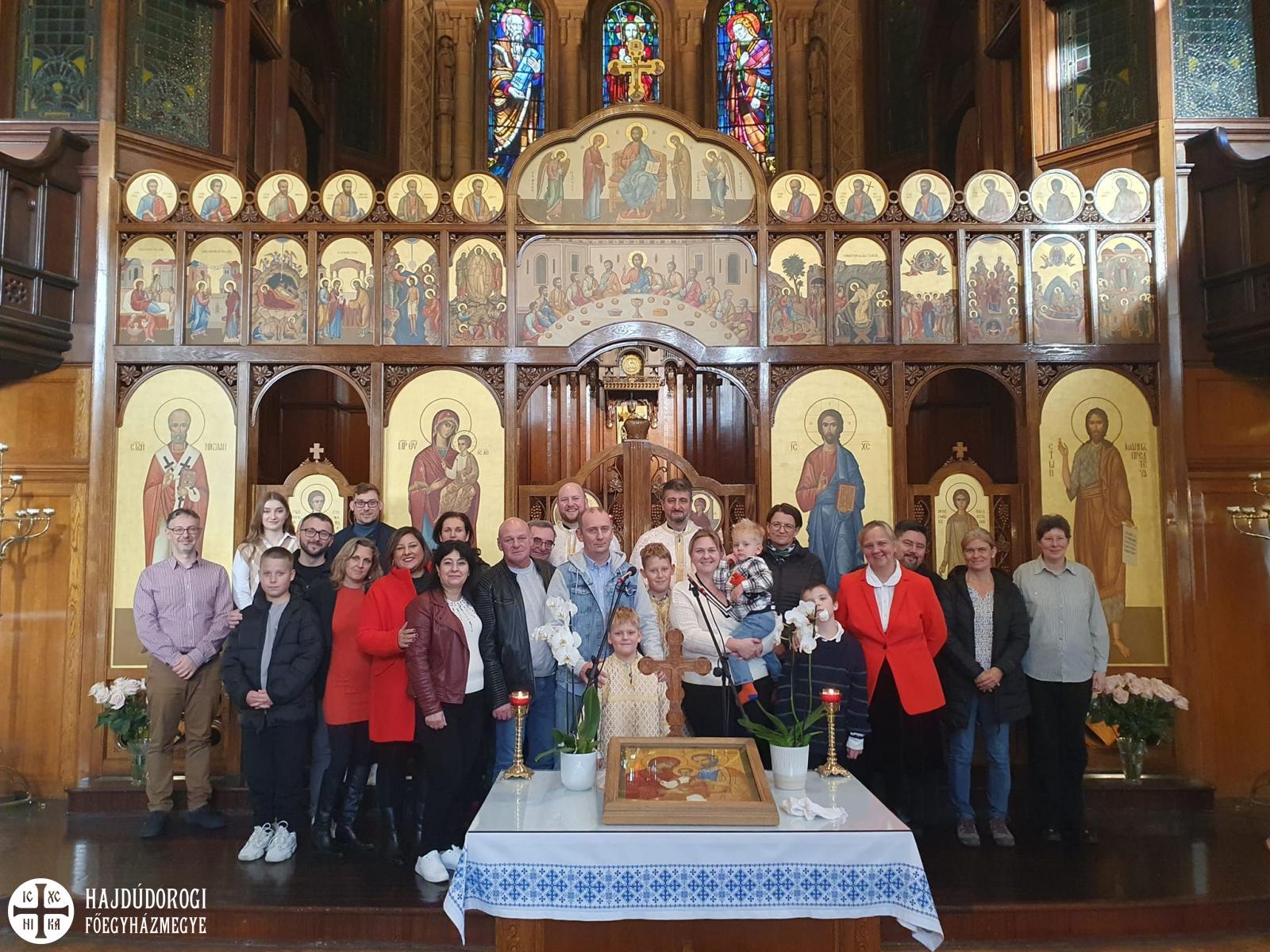 Vasárnap - szokás szerint - az ukrán görögkatolikus székesegyházban találkoztak a magyarok. A mostani alkalom különlegességét az adta, hogy Máté atyán kívül még három egyházi személy is jelen volt Debrecenből feleségeikkel együtt. A Szent Liturgiát Terdik János, a Hajdúdorogi Főegyházmegye pasztorális helynöke vezette, a bűnbocsánat szentségének kiszolgáltatását Urbán Evariszt atya látta el, a kántorizálásban pedig Nyirán János fődiakónus segédkezett. A Szent Liturgia végén megemlékeztek az 1956-os forradalom és szabadságharc hőseiről, majd jó hangulatú beszélgetés következett az angliai hívekkel és a vendégekkel.