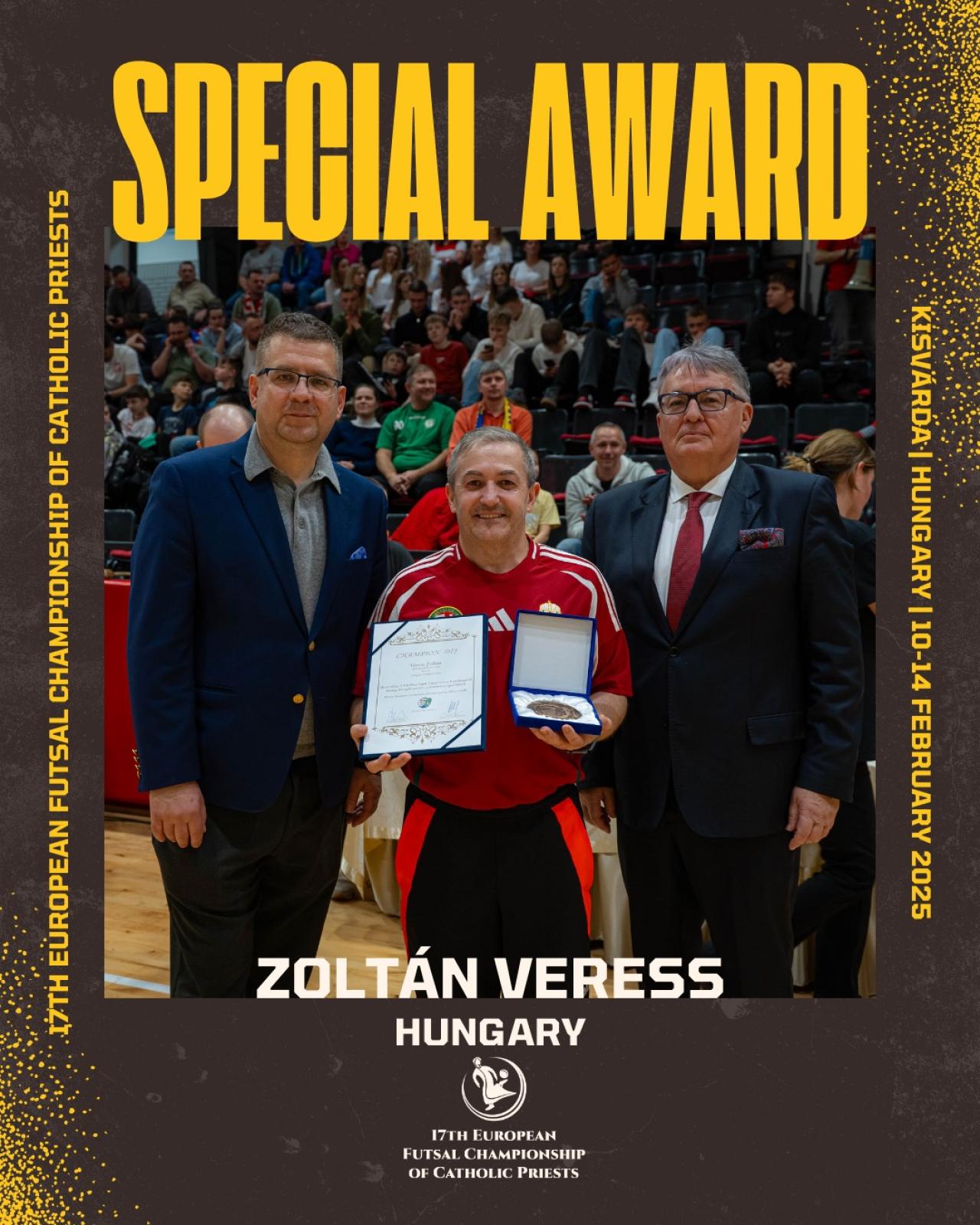 Kisvárda város különdíját Leleszi Tibor polgármester adta át Veress Zoltánnak, aki az Európa-bajnokságok történetében egyedüliként mind a 17 tornán szerzett gólt.