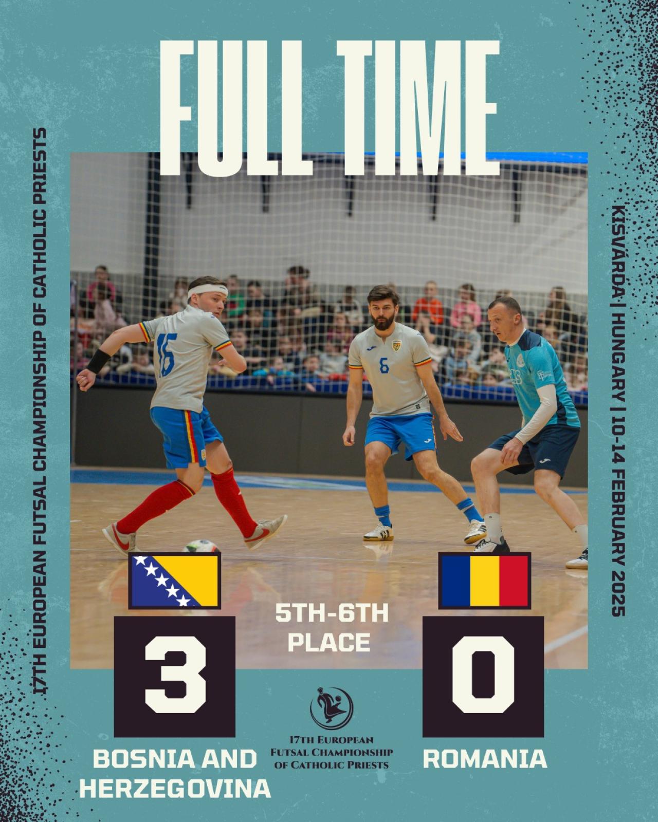 Az 5. helyért Bosznia-Hercegovina mérkőzhetett Romániával. A bosnyákokat kicsit a dac is hajtotta, mert ők nem ezért jöttek: az elmúlt tornákon rendre a végső győzelemért küzdöttek, idén pedig be kellett érniük a legjobb nem elődöntőt érő, 5. helyezéssel. A románoknak ezen a tornán voltak szép skalpjaik, összességében erőn felül teljesítettek, de a végére elfogytak, a bosnyákok megérdemelten győztek 3–0-ra. Az, hogy a labdarúgás közös nevező, közös nyelv, most is érződött. Félretéve történelmi fájdalmat, ellentéteket, a szurkolók egy emberként szurkoltak Románia szépítő góljáért.
