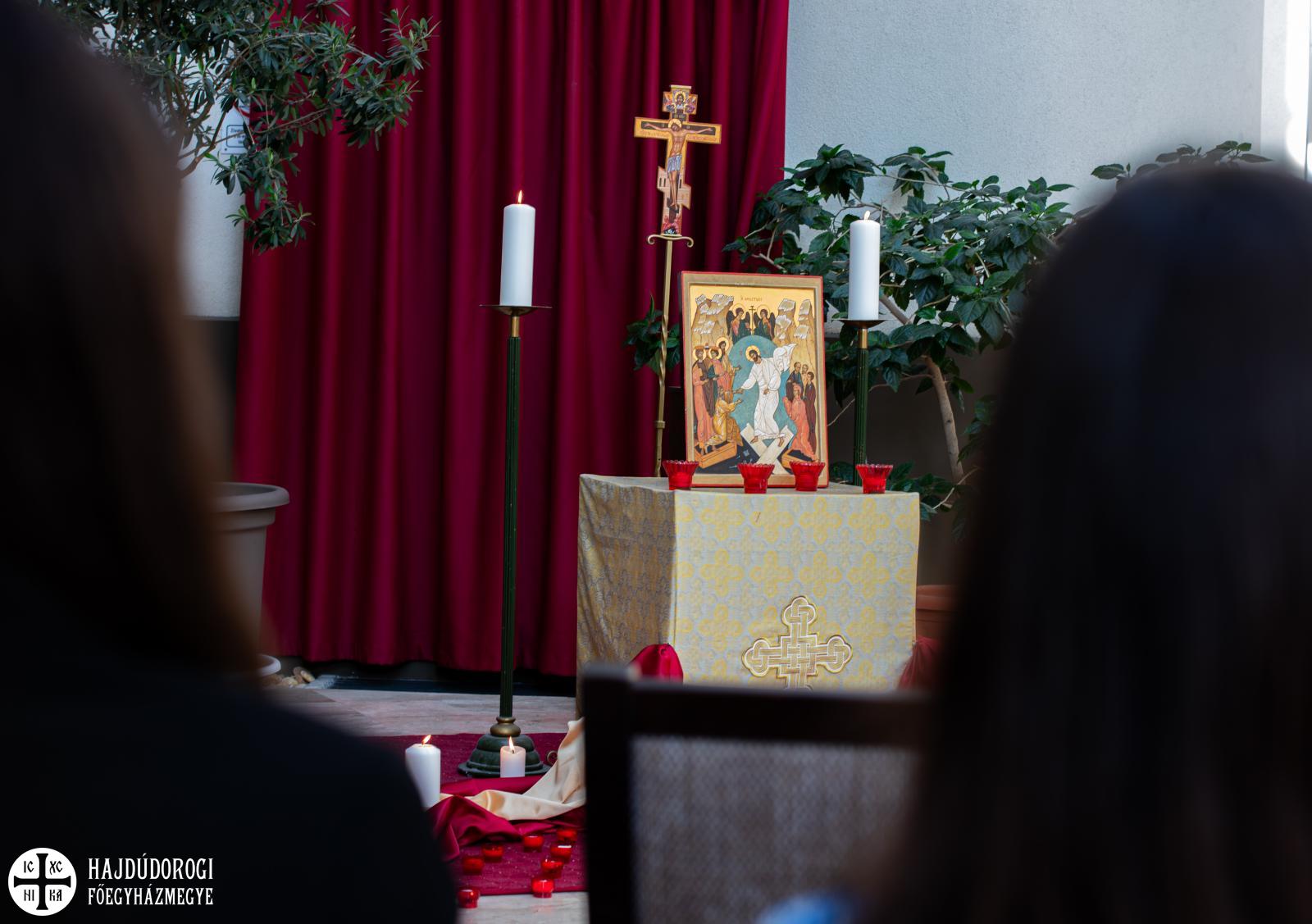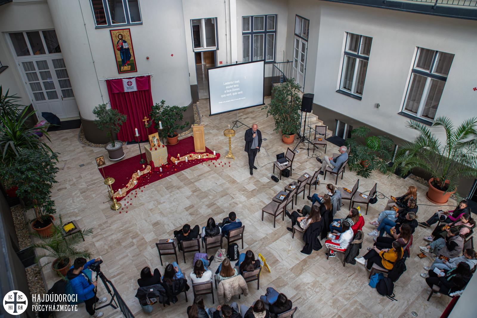 „Már régóta tervezgettük, hogy összehozunk egy ilyen jellegű imaestet” – mondta Domokos Zsolt, az egyik szervező. „Más egyházmegyében nagyon jó mintákat láttunk ezzel kapcsolatban, de leginkább az Országos Görögkatolikus Ifjúsági Fórumon fogalmazódott meg bennünk, hogy nagy szükség lenne egy ilyen együttlétre” – mondta Zsolt atya. A máriapócsi összejövetelen hallhatták először a diákok ugyanis azt a kórust, amelyiket elhívták a debreceni rendezvényre is. Nagy sikerük volt a fiatalság körében: Kertész Annamária (gitár), Bálint Zsolt (ének) és Szentesi Anna (fuvola) zenéje megfogta a hallgatóságot. „Ez a fajta imaforma közel áll a mai fiatalokhoz.” Az aula díszítéséről Rakaczkiné Vadász Viktória, a Pasztorációs Iroda főmunkatársa gondoskodott: ikonokkal, gyertyákkal, drapériával tette hangulatossá a helyszínt. Az ikon hitet fakasztó szépségével és mélységével békét sugároz, és várakozást ébreszt. Imára indító volt a milliő.