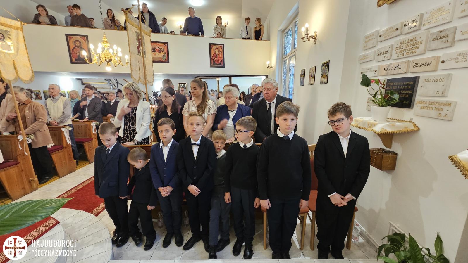 Május 25-én különleges ünnepi öröm töltötte be templomunkat: 15 gyermek először találkozott az Eucharisztiában jelen levő Jézussal. Több hónapos lelki és szellemi felkészülés előzte meg ezt a szép vasárnapot. Nagy köszönet érte Jozsó atyának, aki végig vezette gyermekeinket ezen az úton. A felkészülés lezárásaként a fiatalok a szentgyónásban először kértek bocsánatot minden gyermeki bűnükért és mulasztásukért. Így tiszta szívvel, izgatottan várták az első szentáldozást.