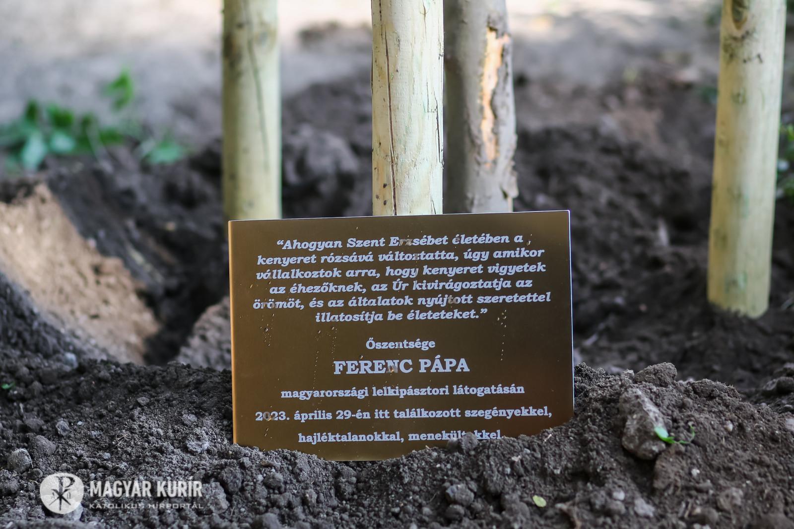 A keresztény ember bátran áld meg hétköznapi tárgyakat; ezzel kiemeli azokat a profán világból a szent felé. A fa az életet szimbolizálja. Az életet, melyet Isten előtt mindig van lehetőség újrakezdeni, másként tenni dolgokat, mint azelőtt; az életet, melyet mindennap közelebb lehet vinni Istenhez – e szavakkal kérte Horváth Zoltán Isten áldását az emlékfára, az alatta elhelyezett, Ferenc pápa látogatását felidéző táblára, majd Szent Erzsébet közbenjárását kérte mindannyiunk életére.