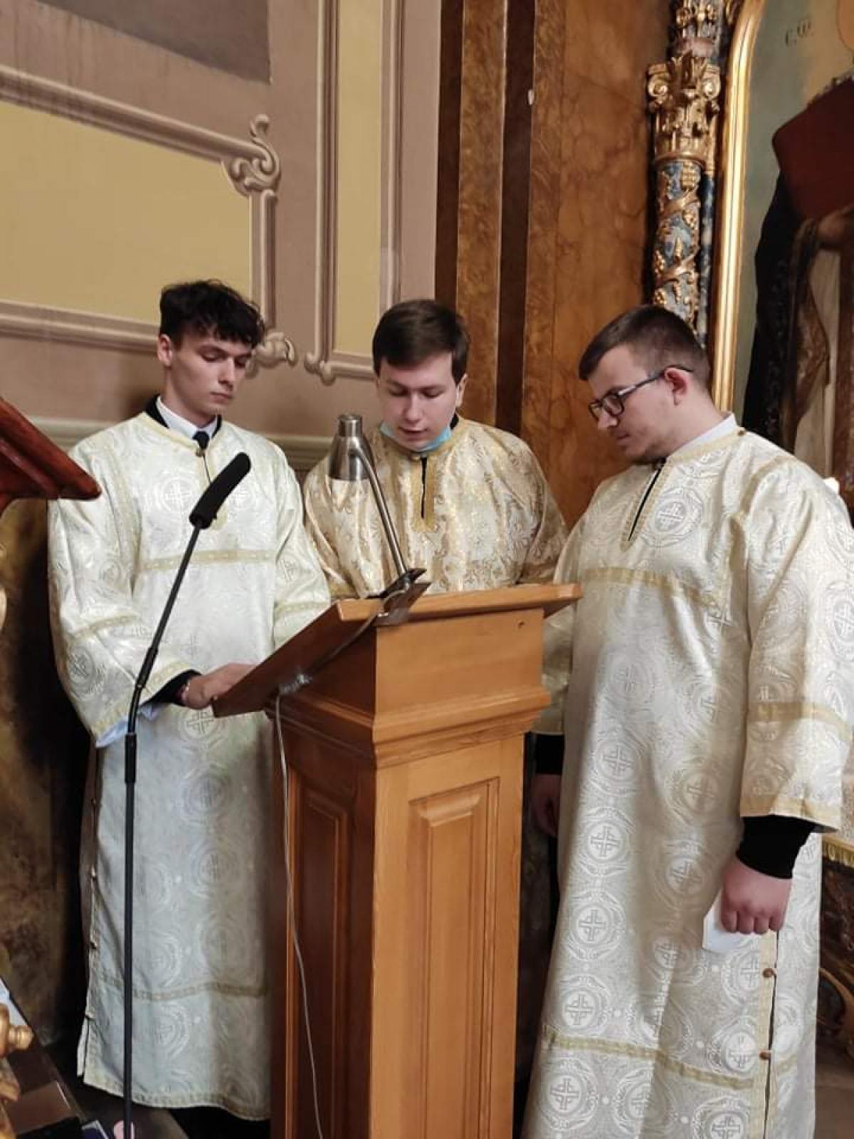 Az elméleti tudáson túl gyakorlatot is szerezhettünk, hiszen péntek esti vecsernyétől a vasárnapi Szent Liturgiáig ez a kis csapat kapta meg a kántorizálás lehetőségét a kegytemplomban, mindenkinek helyet és szerepet adva ebben a szolgálatban.
