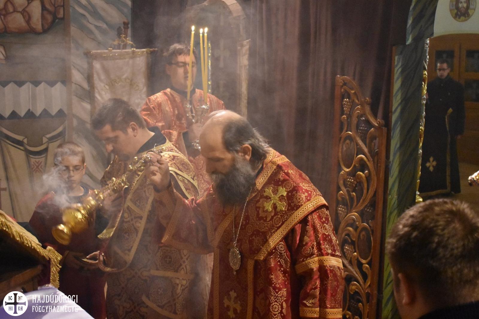 A Nagyböjt egyik kiemelkedő eseménye volt a nyíracsádi egyházközségben, hogy pénteken, február 23-án Kocsis Fülöp metropolita végezte az Előreszentelt Áldozatok Liturgiáját. A templomunkban mintegy kétszázötvenen énekelték a böjt elgondolkoztató imádságait. Az éppen nálunk vendégeskedő kispapok segítették a kántori feladatok elvégzését. A diakónusi szolgálatot Tóth Lóránt látta el, aki nemrégen részesült az egyházi rend alsó fokozatában.