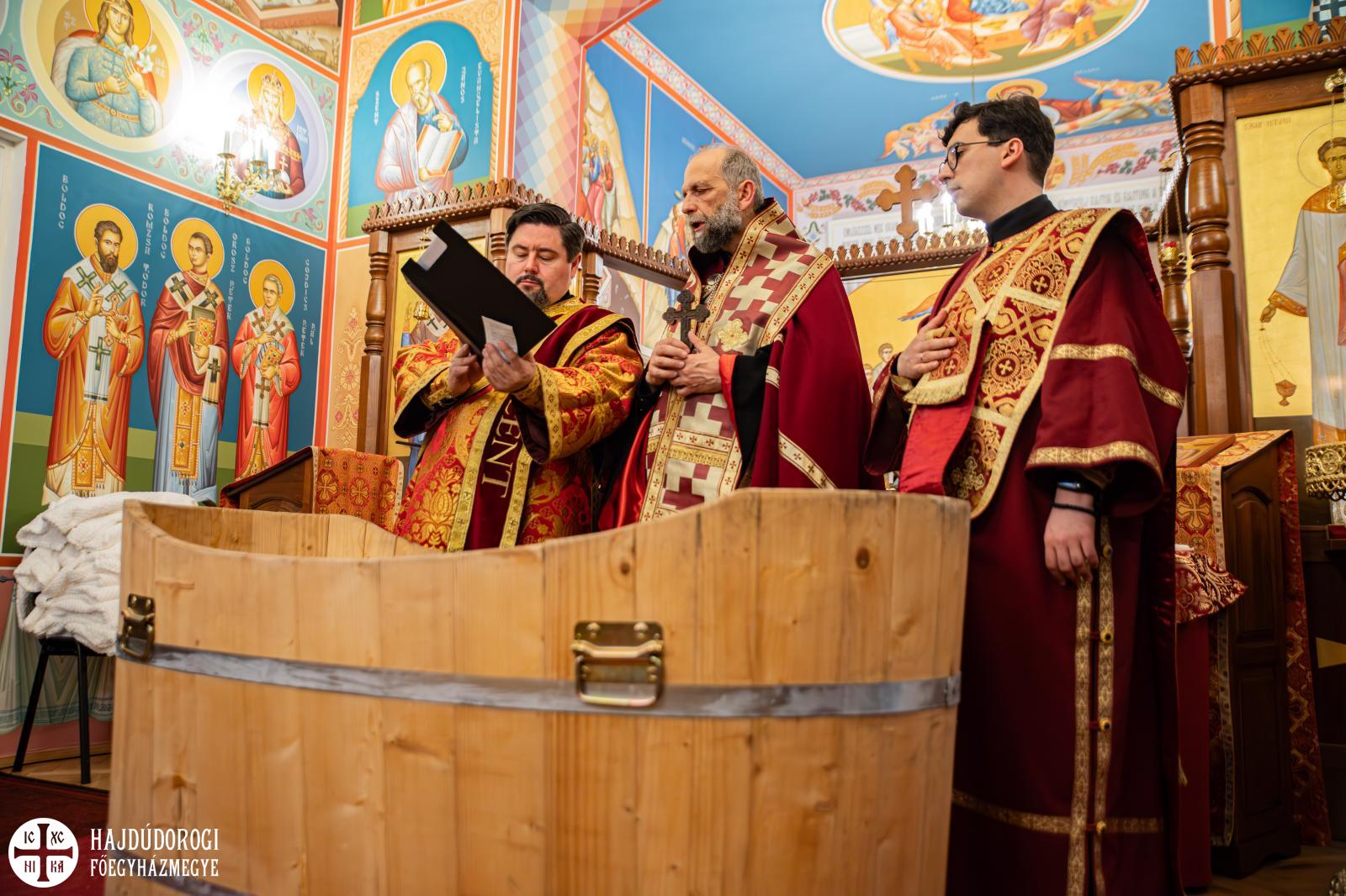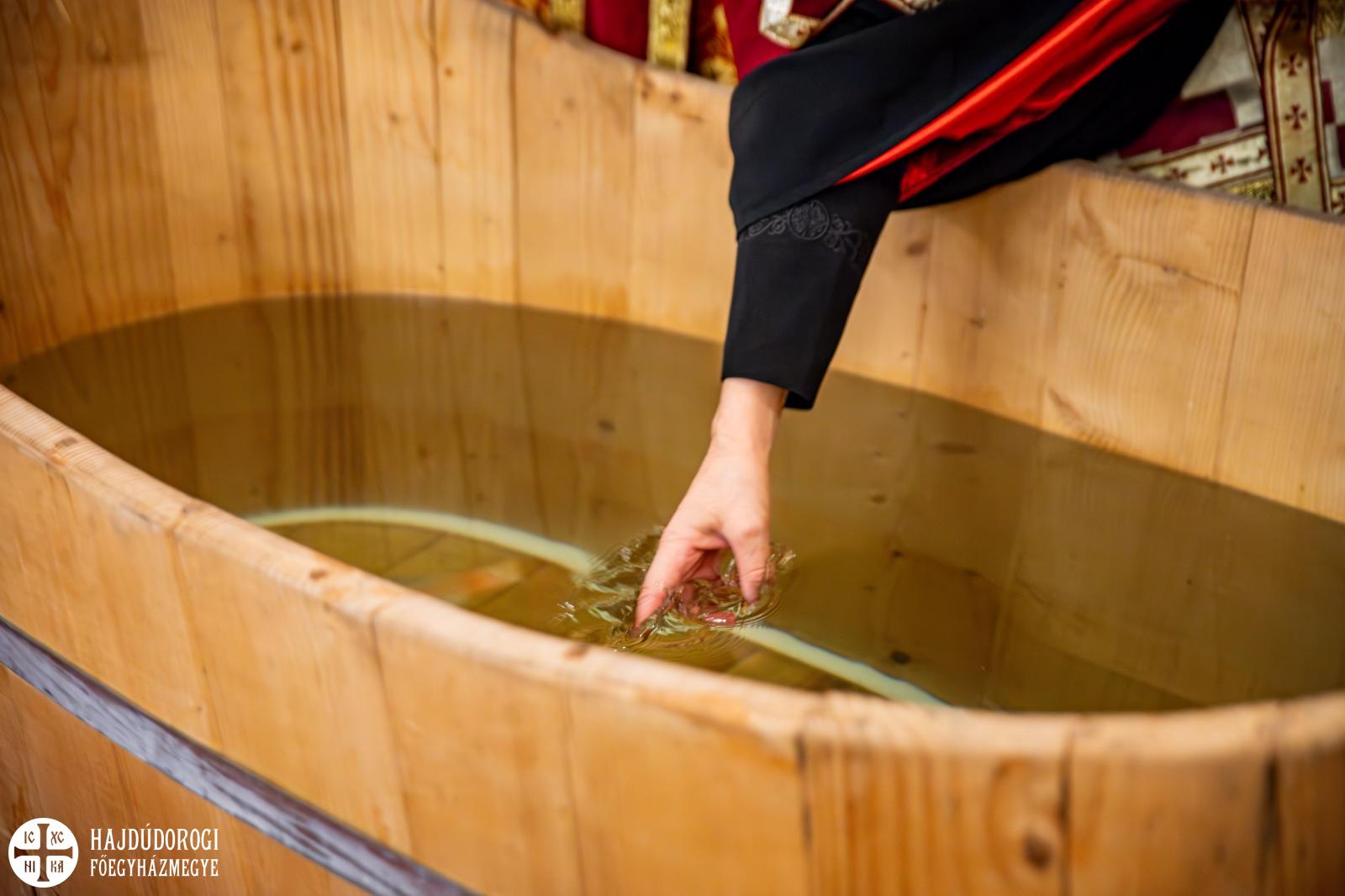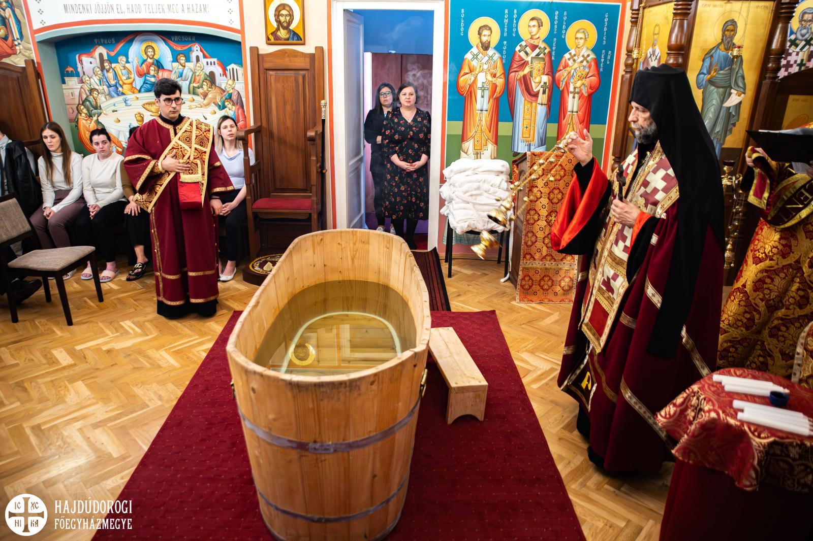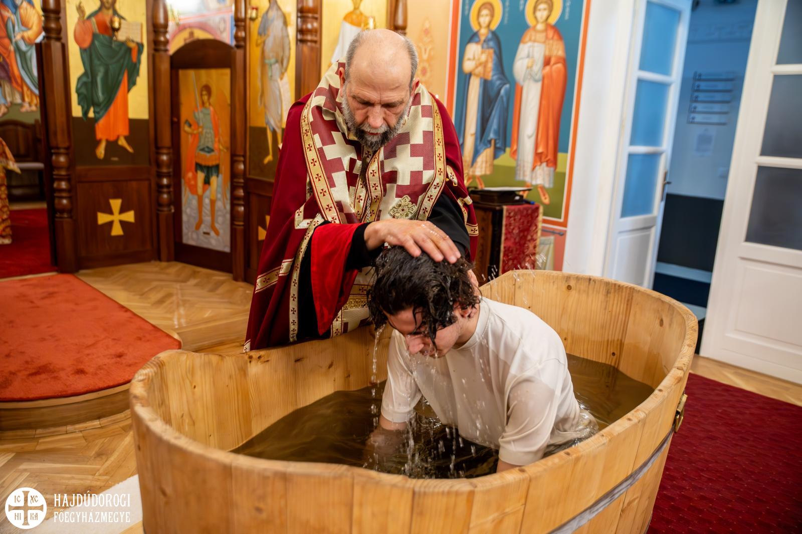 - A szertartás pillanatában csendben odafordultam a mellettem ülő, már beavatott felnőtt keresztényhez, és elárultam neki: egy napon van a születésnapunk. Erre ő rácsodálkozott: hogy lehetséges ez? Elárultam neki, hogy harminc évvel ezelőtt engem is ezen a napon kereszteltek meg felnőtt koromban. Együtt örültünk hát annak, hogy Nagyszombaton válhatott ő is kereszténnyé. Az egyik kiemelkedő szertartási mozzanat szerintem az alámerítés. Nagyon sokáig egyházunkban is a szentelt vízzel való leöntés volt gyakorlatban, de Fülöp metropolita szorgalmazására egyre több pap veszi át azt a hagyományt, hogy gyermekeknél is alámerítéssel történjen a keresztelés. 2022 decemberében karácsony alkalmával próbát tettünk egy arra vállalkozó és a hitjelölti státuszból felkészült fiatal hölgynél, hogy vállalja ezt a típusú keresztelést. Jó volt látni, hogy milyen mély, intenzív hatással volt az ő lelkére, éppen ezért javaslatot tettünk az idén Húsvétkor készülő keresztelendőknél, hogy szeretnék-e ezt a változatát. Mindenki elfogadta ezt a lehetőséget.