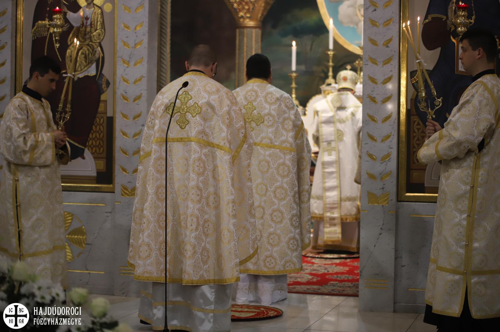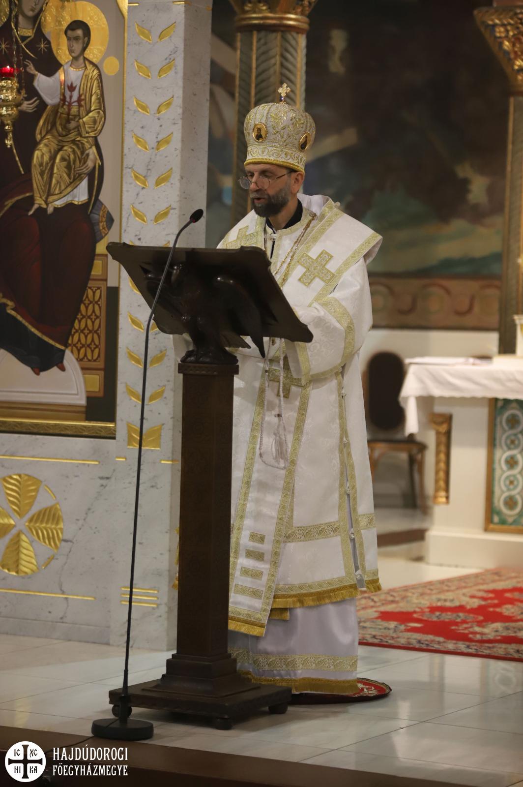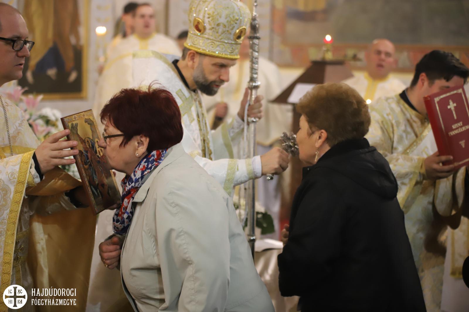 A bizánci egyház szertartásainak felépítésében olykor találkozunk egy-egy felolvasásra kijelölt, vagy éppen erre a célra ajánlott hittanító beszéddel. Ilyen Aranyszájú Szent János húsvéti beszéde is, ami a Krisztussal való teljes közösség megújítására hív. Ennek felolvasásával ért véget a feltámadási szertartás, majd vette kezdetét a püspöki Szent Liturgia.