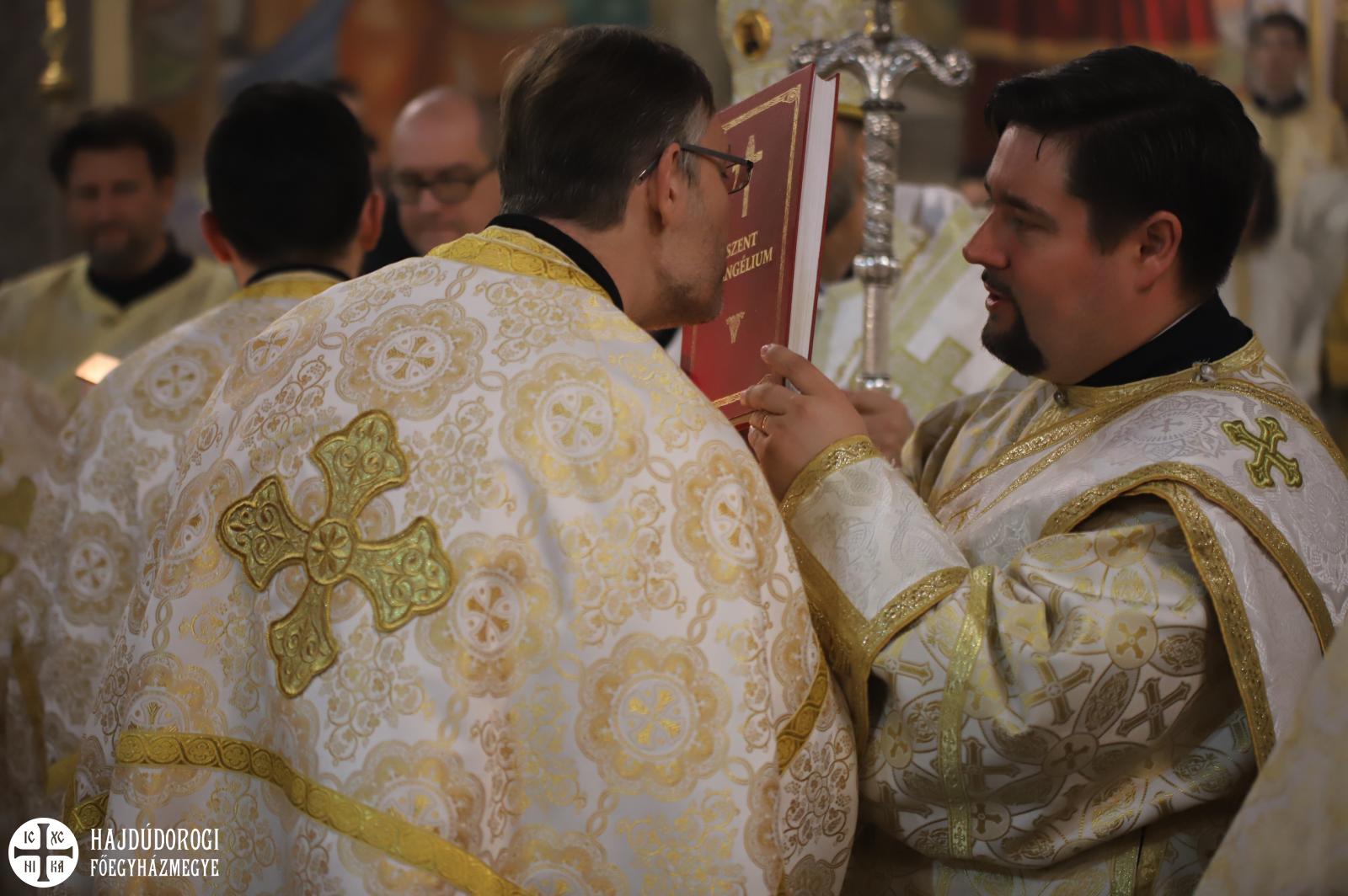 Szent Máté evangéliuma négy nyelven hangzott el az Attila téri főszékesegyházban. Kocsis Fülöp érsek atya magyarul és ószlávul, Lukács Imre atya latinul, Seszták István főhelynök atya pedig görögül olvasta fel az igét.