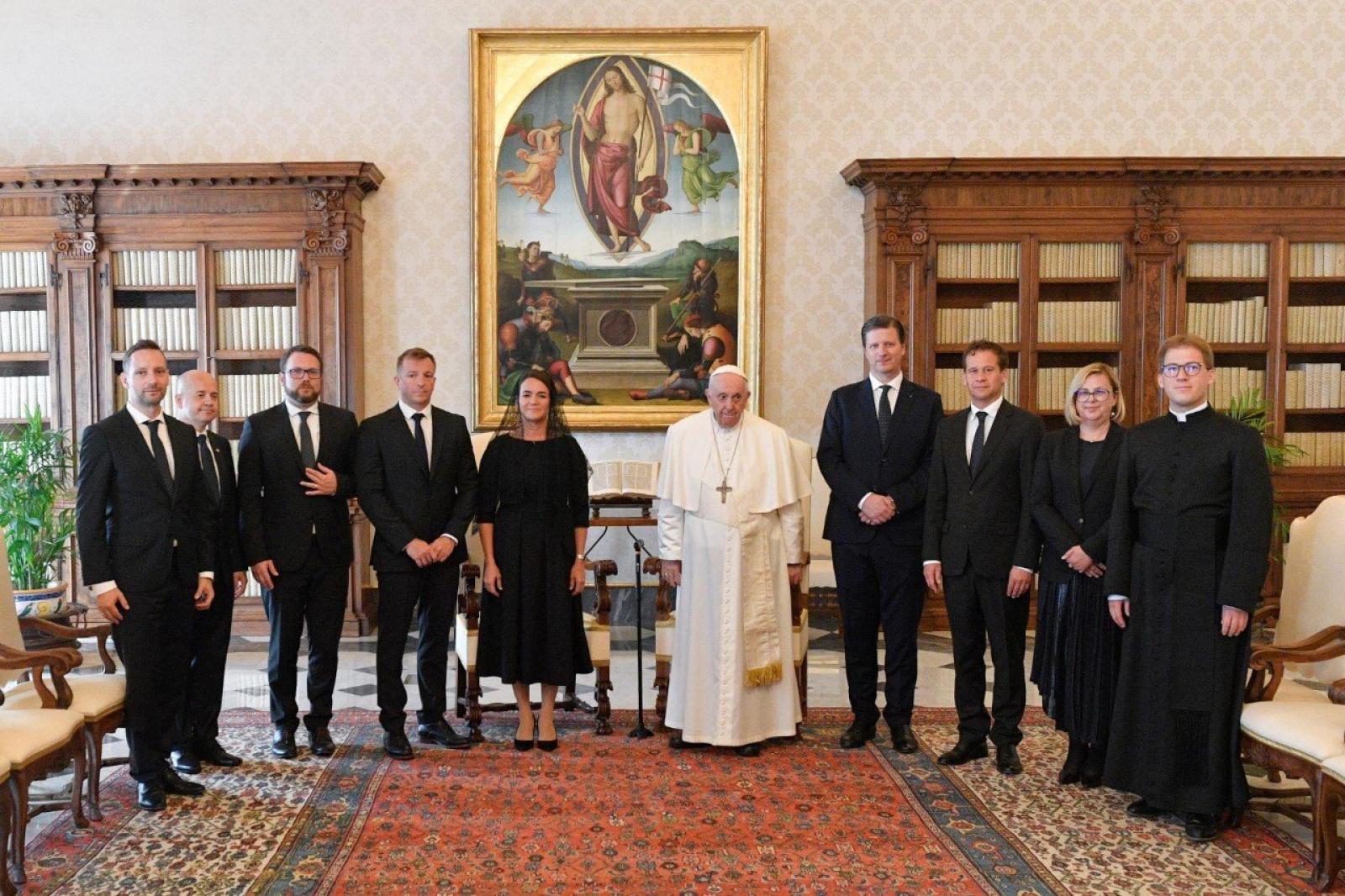 Ferenc pápa csütörtökön délelőtt 10 órakor fogadta Novák Katalin államfőt és 45 perces négyszemközti beszélgetést folytattak spanyol nyelven, tolmács nélkül. A Szentszék Sajtóterme közleményt adott ki a magyar államfő vatikáni látogatásáról. A pápai audienciát követően Novák Katalin találkozott Pietro Parolin bíboros államtitkárral és Paul Richard Gallagher érsekkel, a Szentszék államközi kapcsolataiért felelős titkárával.