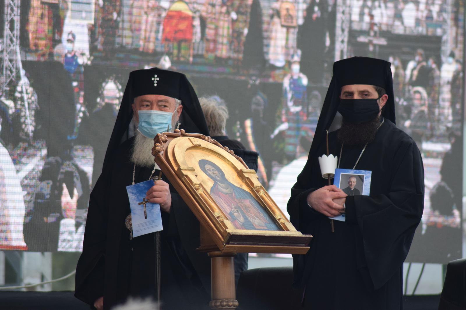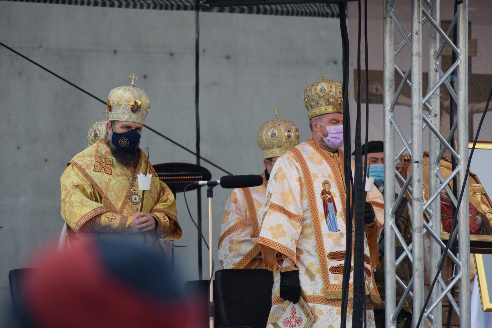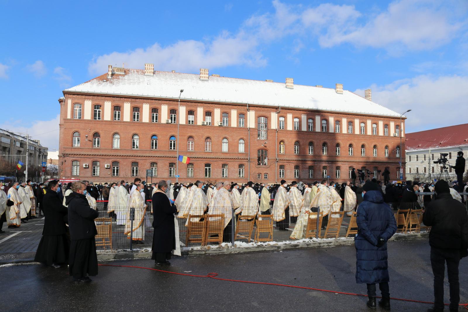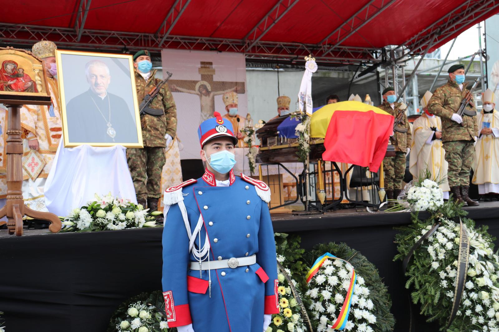 A temetési szertartás a még építés alatt álló görögkatolikus katedrális előtti Timotei Cipariu téren felállított szabadtéri színpadnál folytatódott, ahová katonai díszkísérettel vonultak ki, s román nemzeti lobogóval borították be a koporsót. A mínusz 7 Co-os hideg ellenére, százával gyülekeztek a hívek – de a járványügyi előírásoknak megfelelően egymástól megfelelő távolságra –, hogy végső búcsút vegyenek a hirtelen és fiatalon elhunyt püspöktől.