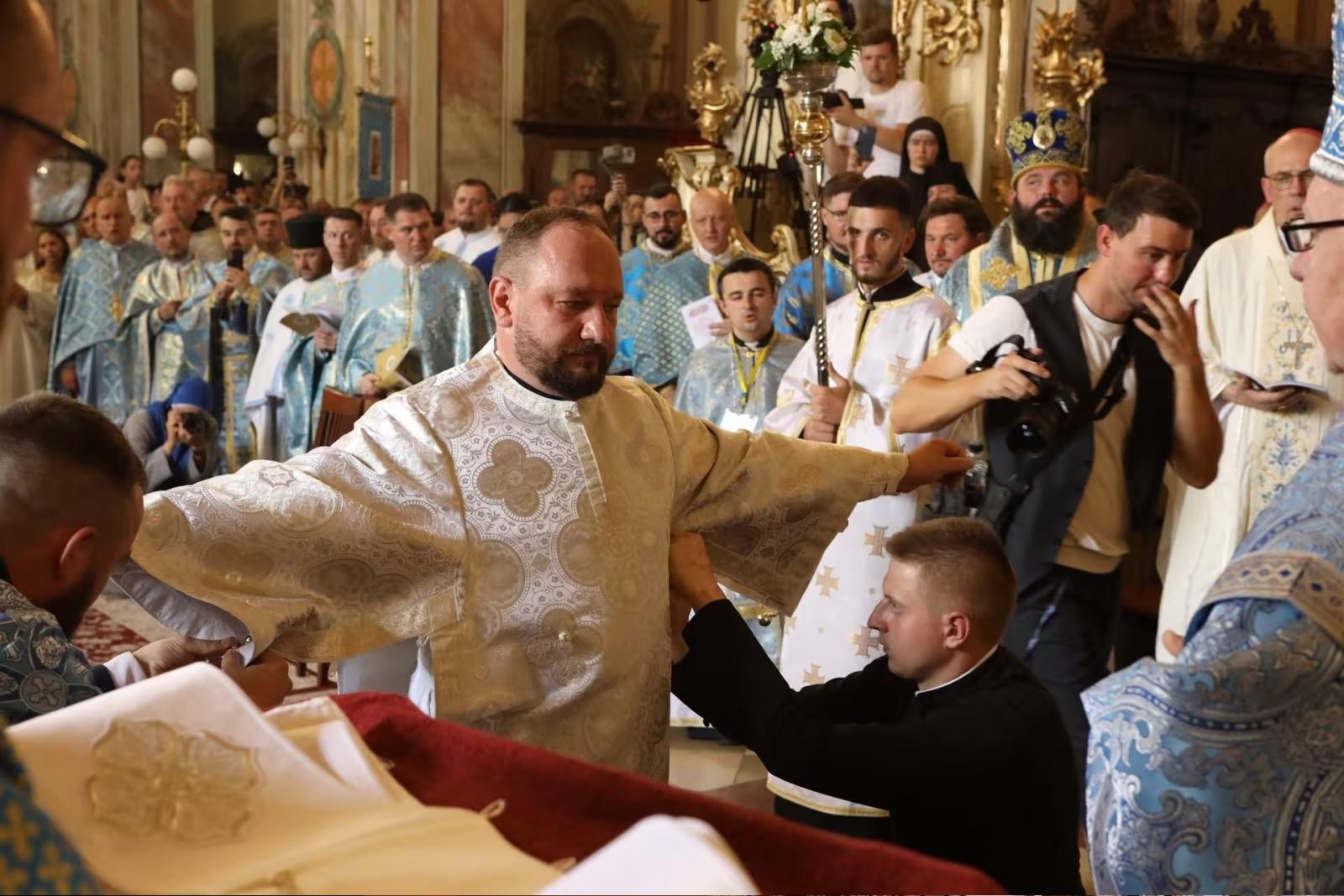 Másnap, 16-án délelőtt az ungvári székesegyházban ünnepélyes Szent Liturgián történt a szentelés szertartása, melyen az ukrán püspökökön kívül a legtöbb európai és észak-amerikai görögkatolikus püspök jelen volt, köztük Fülöp metropolita, Atanáz és Ábel püspök is. A szentelő püspökök – Volodimir Ivano-frankivszki metropolita, Jónás eperjesi metropolita és Nyil munkácsi segédpüspök – az oltárra borult jelölt fejére helyezték az evangéliumos könyvet, és úgy imádkozták el a szentelési imádságokat. A három szentelő püspök annak a jele, hogy a püspök sohasem egyedül cselekszik, hanem a püspökök testületével együtt.