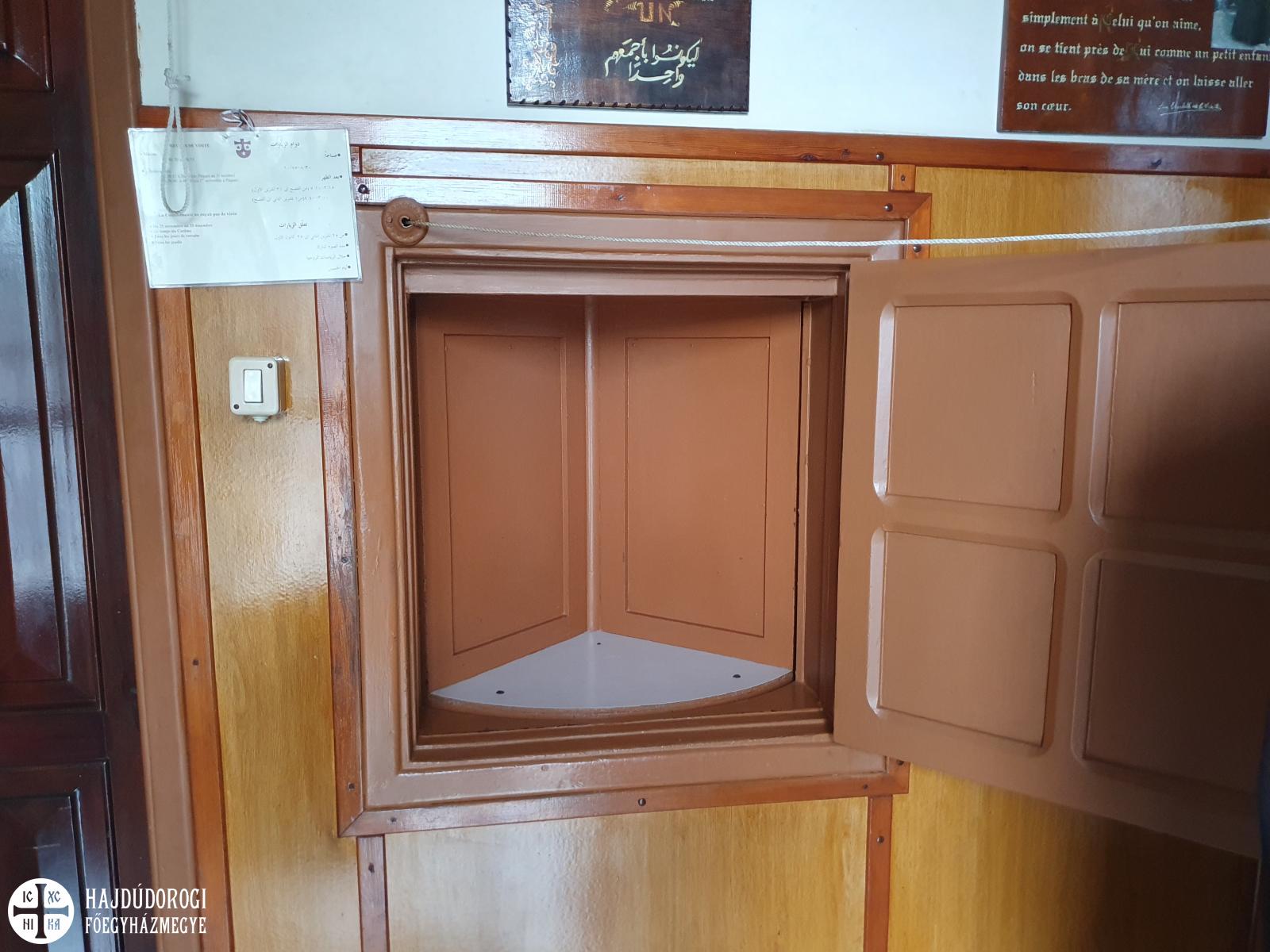 A nővéreket ennek ellenére lehet látogatni. Az előtérben egy kis ablak van, melynek ajtajára zsineg van kötve. Az ajtót kinyitva a madzag meghúzza a fal túloldalán lévő csöngőt, mely hangosan kolompol. Az ajtó mögött azonban nem üveg, hanem egy forgó alkalmatosság van, mely eltakarja egymástól a fal két oldalán beszélő személyt. Ebbe a szerkezetbe bármit be lehet rakni, így azt tovább forgatva „gazdát cserél” a ráhelyezett tárgy. Előttünk egy hölgy tojásokat hozott a nővéreknek. Hallottuk a fal túloldalán lévő nővért, de látni nem láttuk. A látogató betette a tojásokat, a nővér megforgatta a különös szerkezetet, elvette az élelmet, és cserébe egy rózsafűzért adott a felajánlónak.