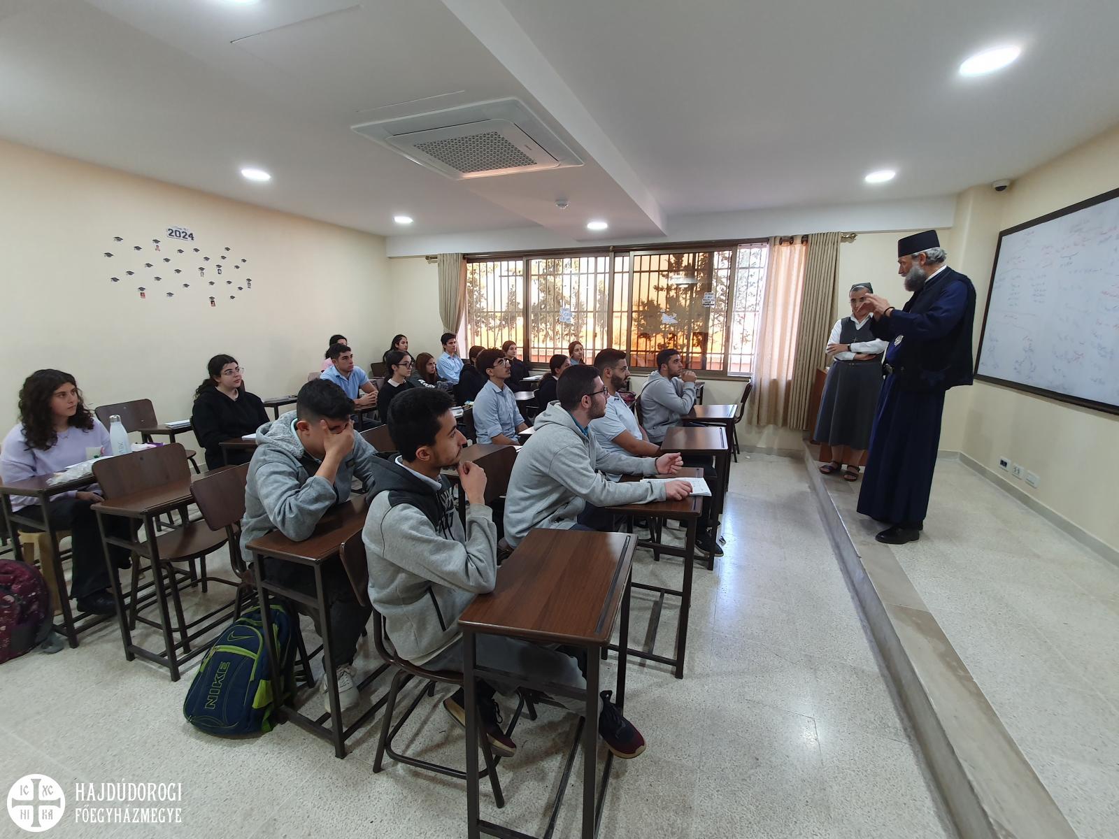 Fülöp metropolita szíriai útjának második napja a fiatalokkal való találkozás jegyében telt. Délelőtt az óvárostól negyed órányi útra lévő Al Riaya melkita iskolába látogatott. Szíria legnagyobb alap- és középfokú oktatási intézménye óvodától érettségiig biztosítja a színvonalas keresztény szellemű oktatást. A 2011-ben megnyílt, hatalmas iskolában a legkisebbeknek játszóterek, ugrálóvárak, a nagyobbaknak informatikaterem, laboratóriumok, könyvtár és több sportpálya áll rendelkezésére.