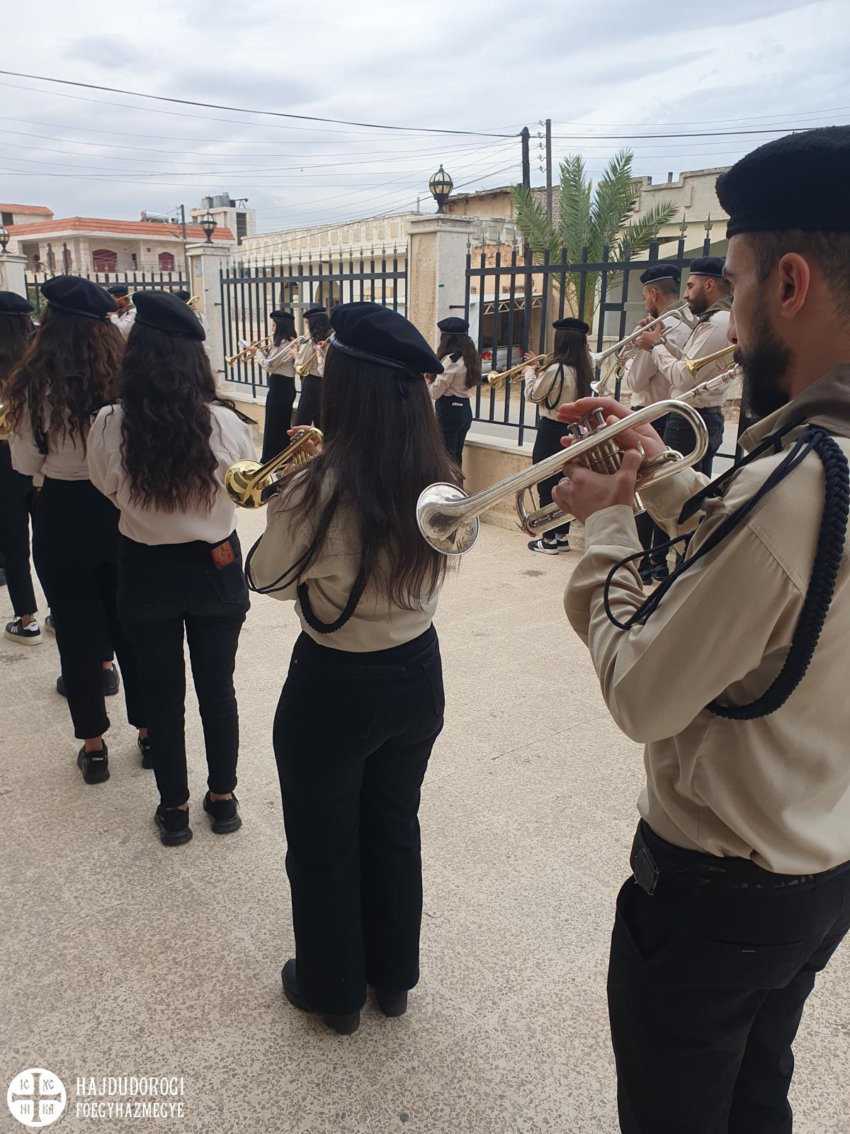 A szír keresztényeknél szokás, hogy az egyébként igen népszerű cserkészek egyben zenélnek is, ünnepeken, különleges alkalmakon pedig körmenettel emelik az ünnep fényét. A Szent Liturgia végeztével a püspök atyák a főkapun vonultak ki a templomból, és fiatalok nagy csinnadarattája mellett vonultak be a parókia közösségi épületébe.