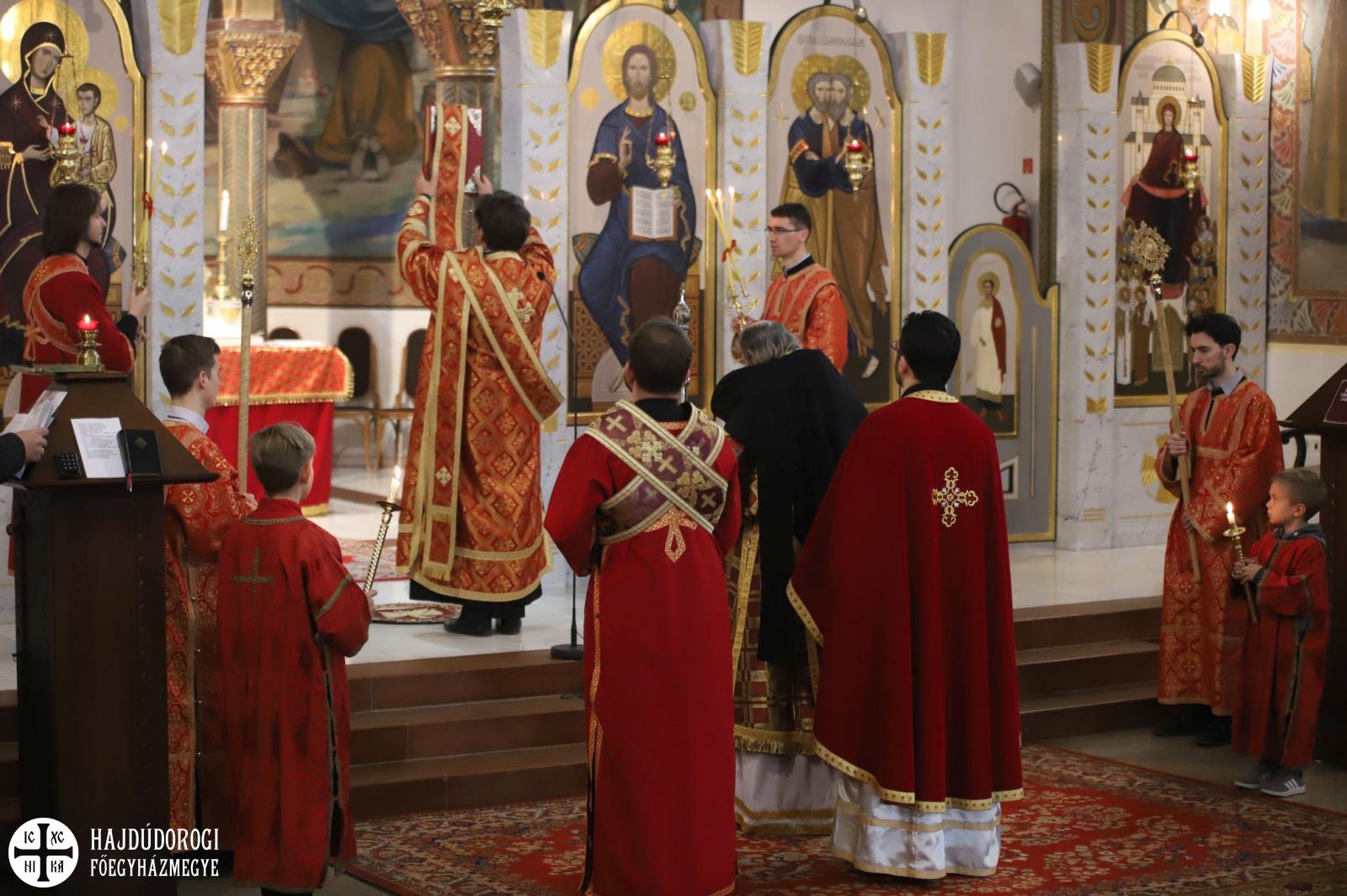 A Szent Liturgiát vezető és a szertartáson tanítást mondó Fülöp metropolita atya a két bűnös ember: Júdás és Mária Magdolna kapcsán az egyik legfontosabb emberi tulajdonságra, az őszinteségre hívta fel kezdésként a figyelmet. Szépen párhuzamba lehet ugyanis őket állítani, hiszen hiába volt Júdás buzgó apostol, nem szerette őszintén az Urat és a helyzetet nem értve el is árulta Őt. Mária Magdolna viszont, mikor rádöbbent arra, hogy nem élhet Isten szeretete nélkül, akkor a legőszintébb gesztusként illatos, drága olajat öntött Krisztus fejére.