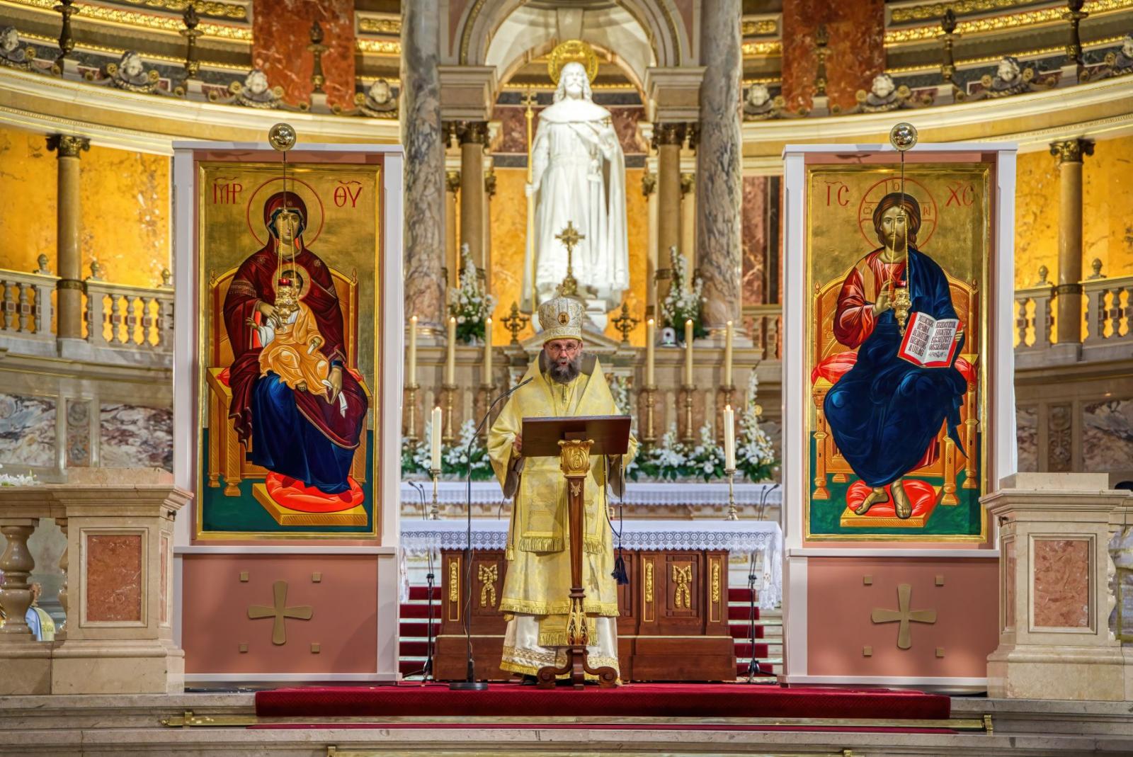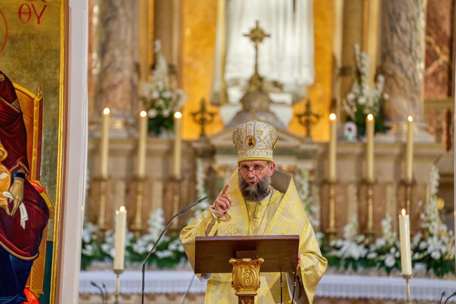 Egyházunk ismeri ezt az emberi gyengénket, mely nem csak Mártára volt jellemző. Nem véletlenül énekelteti velünk az angyalokkal együtt a Szent Liturgiában a szentírási szakaszok és a tanítás elhangzása után a szent figyelmeztetést, hogy: Tegyünk félre mostan minden földi gondot! Ez ma itt ószlávul fog elhangozni – mégpedig a sajópálfalai irmológionban több száz éve lejegyzett dallamon – de azért éppen úgy érvényes lesz mindnyájunk számára most is. Az Isteni Szent Liturgia föl akar emelni ebbe a tökéletes Istenre figyelésbe. Ekkor már semmi és senki nem számít. A rendkívüli személyiségek, a számos külföldi testvérünk jelenléte, a mindenfelől érkező hívek igen nagy számának szokatlansága sem fontos. Tegyünk félre mostan minden földi gondot, mert a nagy Főpap íme, már most bevonul az életünkbe!