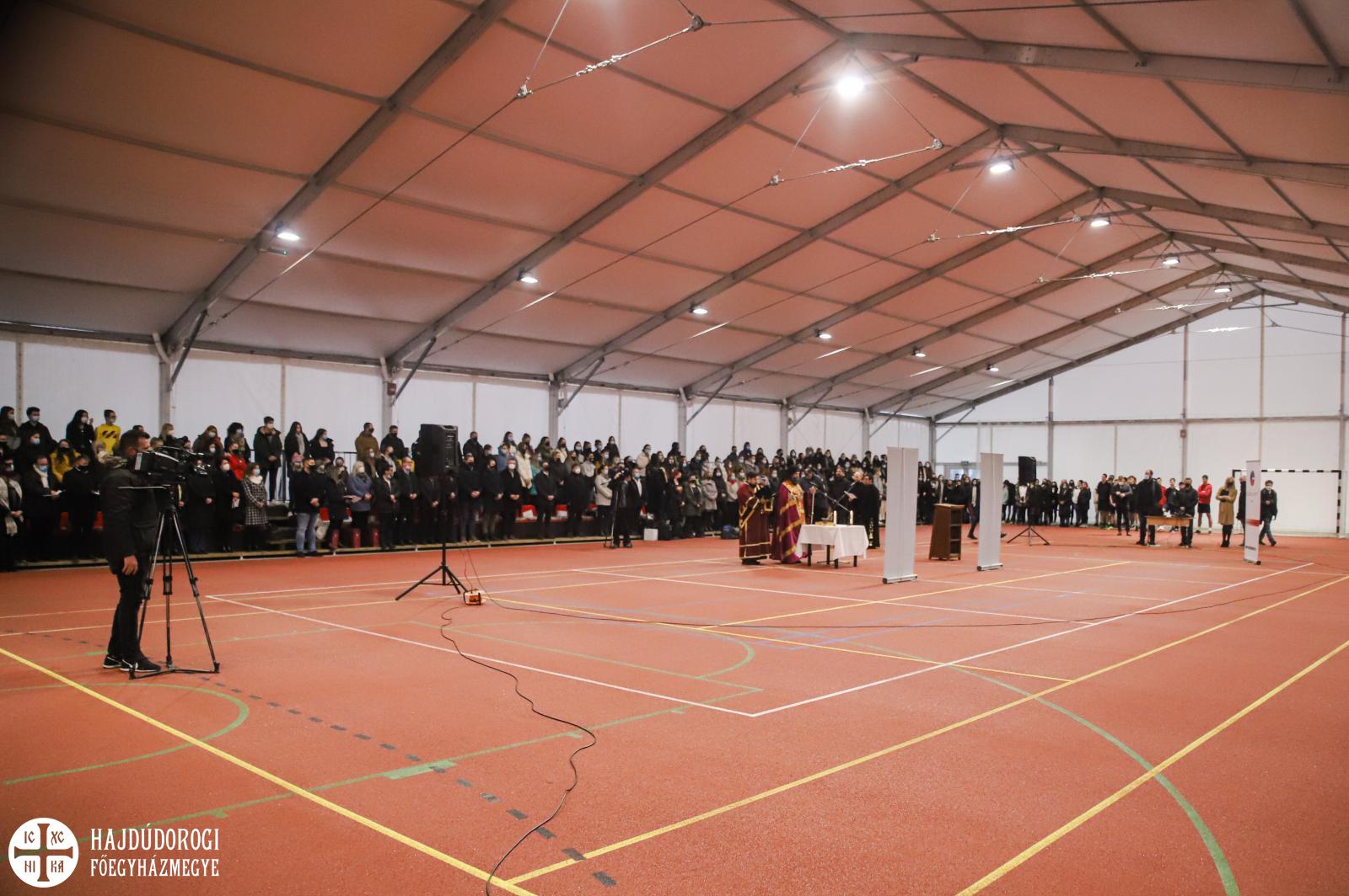 Fülöp metropolita atya felidézte: azért lett néhány éve Szent László az iskola neve, hogy személye igazi példa legyen az itt tanulóknak. Azok a szentek, akik nagyon tudnak szeretni, nem törődve az őket gyűlölőkkel sem. Lovagkirályként úgy állt helyt, hogy végig megmutatkozott szentsége. „Szent László tanít minket szeretni és harcosnak lenni, amely szellemi és fizikai értelemben egyaránt megmutatkozhat. Úgyhogy legyen nagy küzdelmek helyszíne ez a sportcsarnok, ahol nem a másikat akarjuk leküzdeni, hanem magunkat, ami által följebb juthatunk.” – zárta gondolatait a főpásztor.