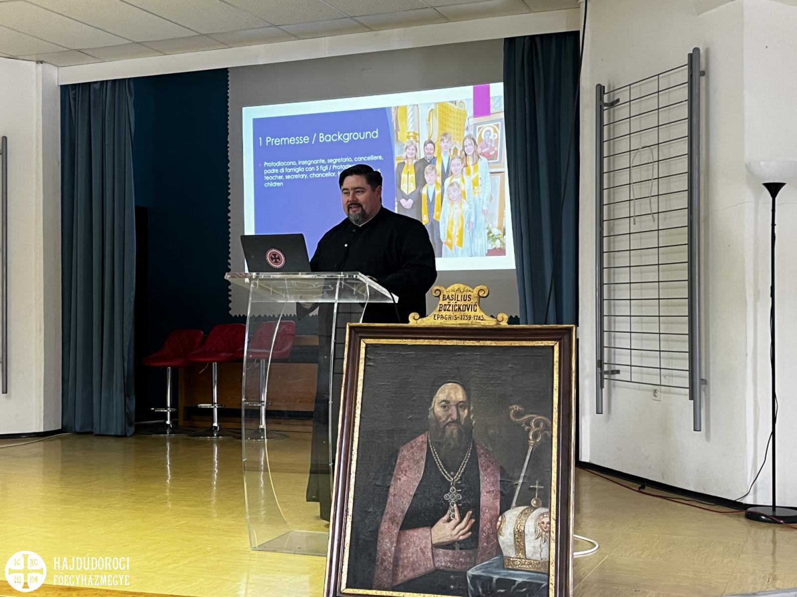 A papok családi életének egyfajta teoretikusabb megközelítése után – a sorban a harmadik prezentációban – Nyirán János fődiakónus atya mindennek a gyakorlatias oldalát láttatta Gyermeknevelés a görögkatolikus papcsaládokban című előadásában. Ötgyermekes családapaként nemcsak általánosságban beszélt a gyermeknevelés szépségeiről és nehézségeiről, hanem személyes tapasztalatait is elmondta, konkrétan megfogalmazva azokat a templomba járástól a böjt betartásáig, a média okozta függőségektől a modern kor adta lehetőségek kiaknázásáig. A kihívások ellensúlyozásaként egyfajta javaslattal is szolgált előadásában. A pap és diakónus családjának lelkisége nagymértékben függ a pap és a diakónus, valamint feleségük lelkiségétől, az egyház imádságaiban és liturgiájában való közös részvételtől.