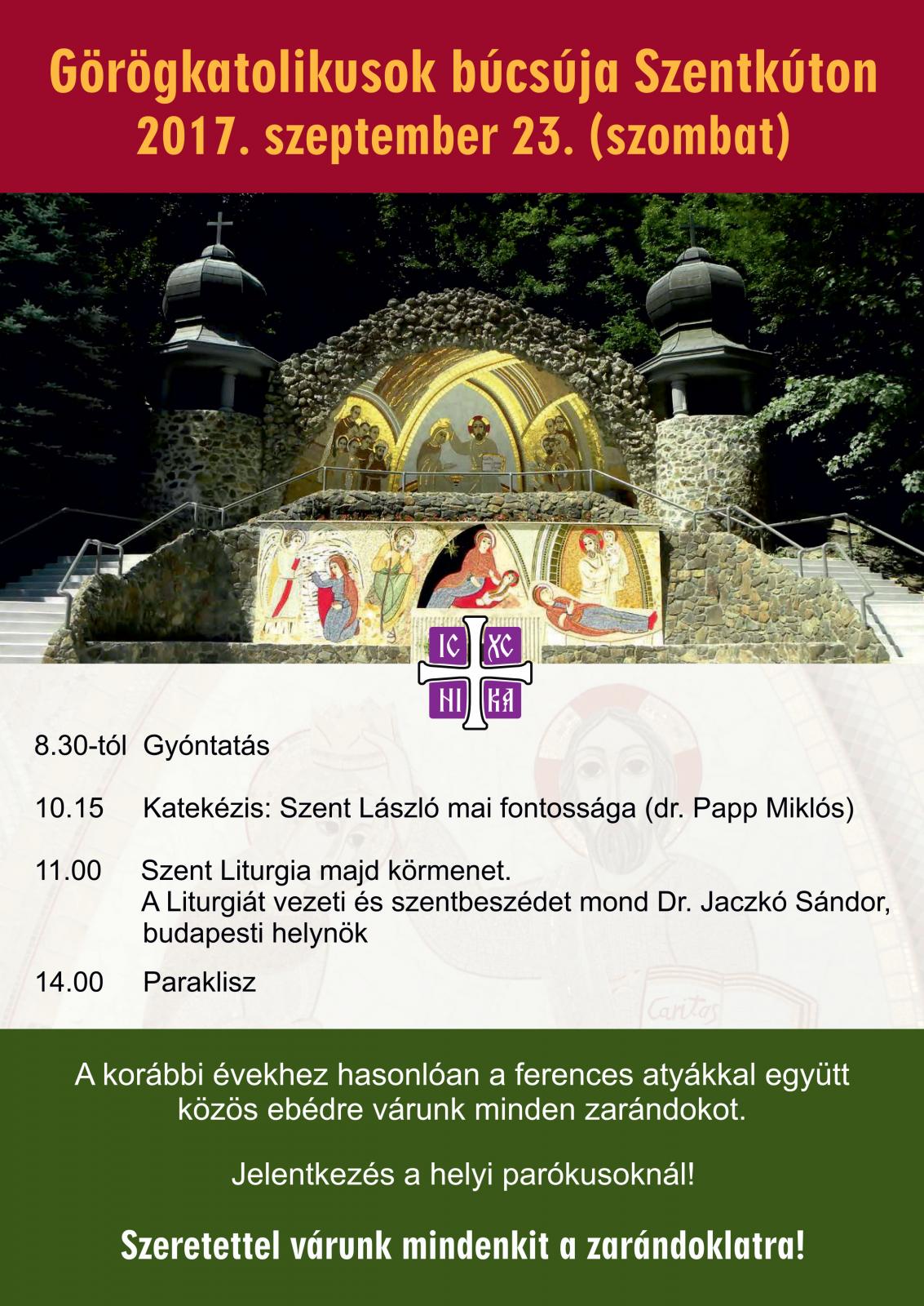 Idén szeptember 23-án, szombaton lesz Szentkúton a görögkatolikusok zarándoklata. Kiváló lehetőség egy tanévkezdő zarándoklatra is, hogy a szentségekben megerősödve kezdjük a bölcsesség útját. A Liturgiát Dr. Jaczkó Sándor helynök atya fogja vezetni, a gyóntatásra a ferences atyák is rendelkezésre állnak. Aki ebédet is kérne, annak jeleznie kell.