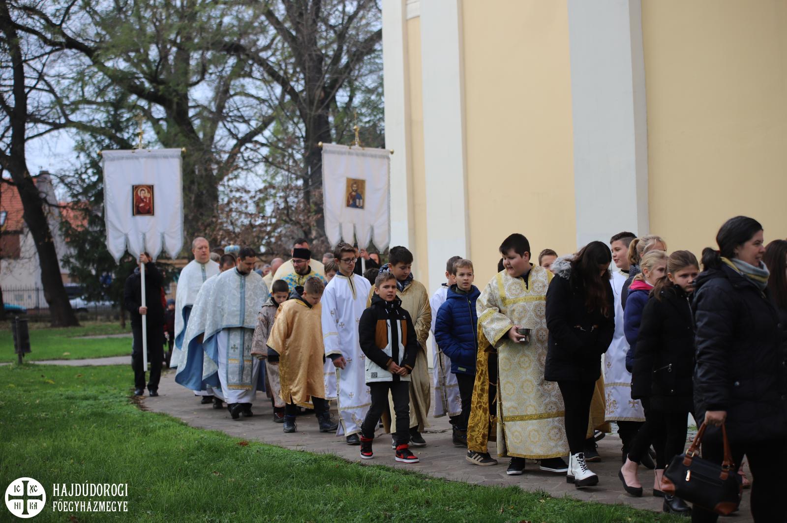 Nem lehet véletlen - kezdte beszédét Fülöp metropolita atya - hogy a hajdúdorogiak ősei valamilyen döntés eredményeképpen úgy határoztak, hogy a templom címünnepe az Istenszülő templomba vezetése legyen. Ők nagyon jól tudták az igazságot, talán a jövő nemzedékeinek üzentek vele: a legfontosabb feladat gyermekeink bevezetése a templomba, mert a kicsinyeknek a templomban a helyük, mindent meg kell tenni, hogy otthon érezzék ott magukat.