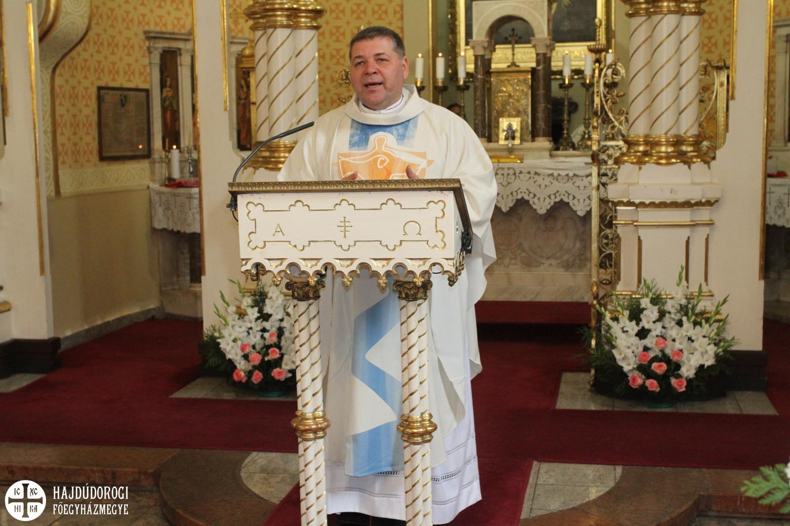 “Maga az Istenszülő, Szűz Mária volt az, aki igazán nagyot mert. Oda merte tenni egész életét Isten tenyerébe, sorsának, életének összes bizonytalanságát oda merte neki adni. Azt merte mondani az angyal üdvözletére, hogy Legyen nekem a te igéd szerint, azaz rád bízom az életemet, pedig nem tudom, mi lesz a nyereségem. Egy dolgot azonban biztosan tudhatott: ha Istenre bízzuk az életünket, a szeretteink életét, akkor baj nem történhet. Mária valószínűleg sejtette, hogy ez az igen nem lesz egyszerű, tudjuk, végül meg kellett élnie saját gyermeke halálát, ami egy szülőnek a legszörnyűségesebb. Tamás atya hangsúlyozta: ha Istenre bízzuk az életünket, az nem azt jelenti, hogy minden a saját terveink szerint fog alakulni. “A vigasz az, hogy aki meri bátran Isten szerint alakítani az életét, az biztosan győztes lesz. Szűz Mária életében is voltak olyan pillanatok, amikor nem értette mi, miért történik vele, de változatlanul mert bízni Istenben. És a végén minden értelmet nyert. Az Istenszülő adott elsőként tanúságot nekünk, hogyan lehet Istenre bízott életet élni, igazán győztessé válni a nehézségeken keresztül is.”