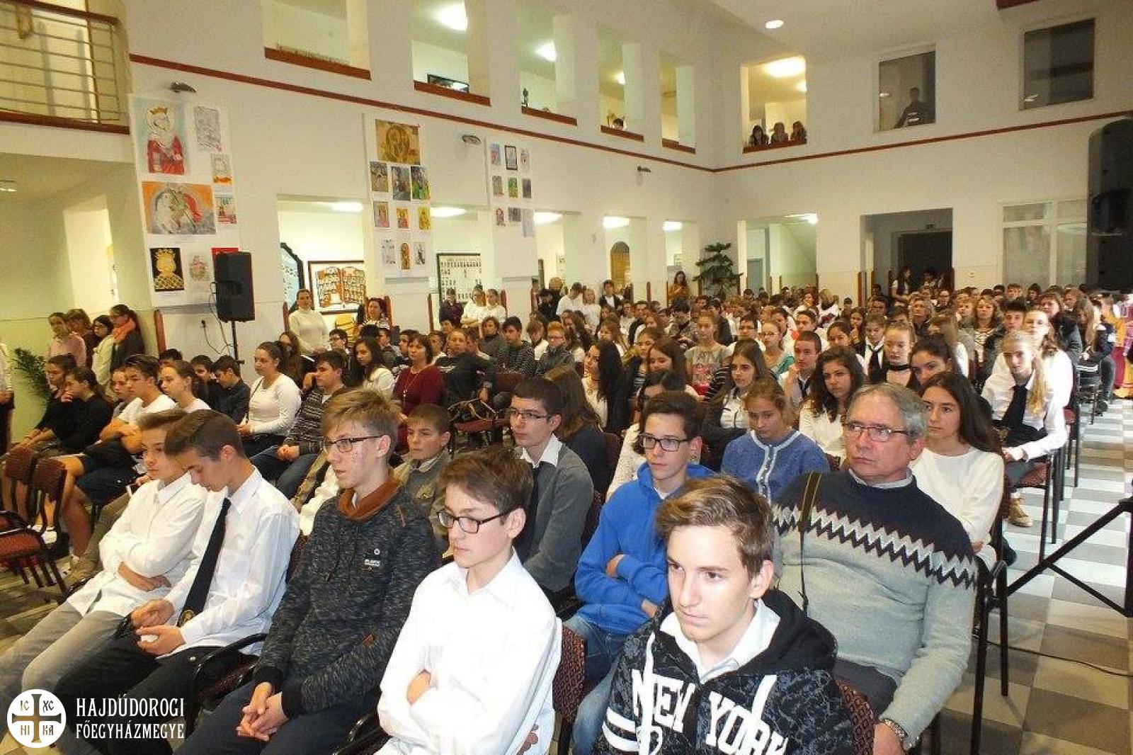 2017. november 17-én hatodik alkalommal rendeztük meg a Hajdúdorogi Görögkatolikus Ifjúsági Találkozót (közkedvelt néven HaGIT) a görögkatolikus általános iskolák tanulói számára, 12 tantárgyból. A nemes versengés a Szent László emlékév jegyében telt, erről szólt több tantárgyi megmérettetés és rajzpályázatunk is. Nagy örömünkre szolgált, hogy 250 tanuló jelentkezett versenyünkre, és mérte össze tudását. A magas számú részvétel miatt a rendezvény kinőtte kápolnánkat, ezért a megnyitót és a záró ünnepséget az aulában rendeztük, hál’ Istennek azt is megtöltöttük.
