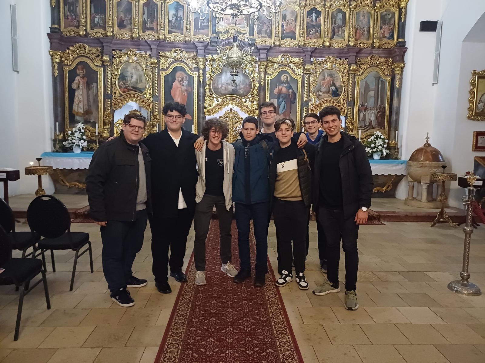 Verdes Miklós atya már a zarándoklaton megszólított bennünket, hogy ezen a napon várni fog minket. Délelőtt, az érkezés folyamán Pál apostol szavai jutottak eszembe, amikor megláttam a sok, mosolytól széles arcokat. A folyamatos múltidézés minden pillanatról kedves emlékeket tárt fel gondolatainkban. "Emlékszel?" Egy mondat, ami szinte mindenki száját elhagyta. A rövid beszélgetések után Miklós atya a Görögkatolikus Metropólia első székesegyházába invitálta a csapatot, ahol Dalanics Zoltán parókus várta a ministráns csapatot, hogy bemutathassa a székesegyházat, hiszen sokan még nem is voltak ezen szép templomban. Ennek megtekintése után Szent Liturgiában adtunk hálát római zarándoklatunkért, és a jelen találkozóért. Gémes Péter atya beszédében a hála mellett a ministrálásban való kitartásról elmélkedett, buzdítva ezzel a fiatalokat a további áldozatos szolgálatra.