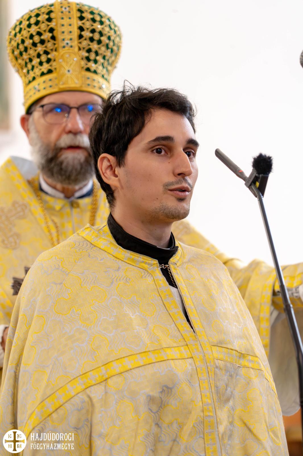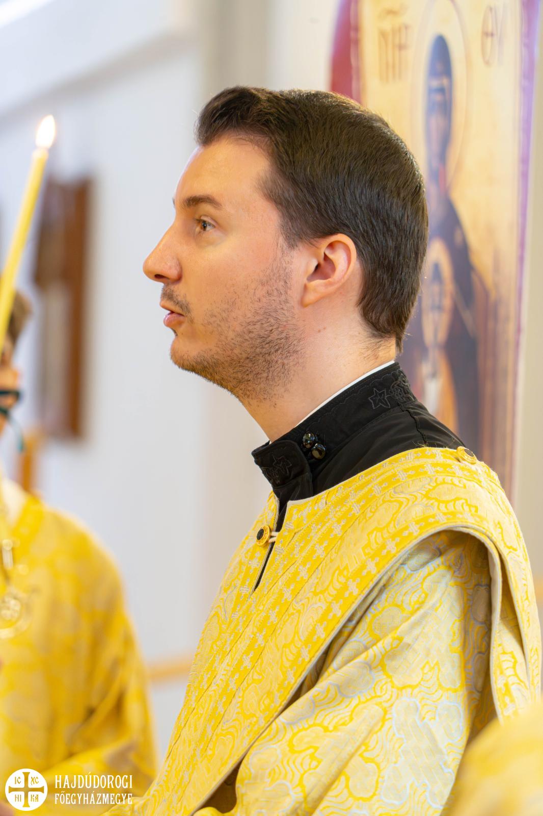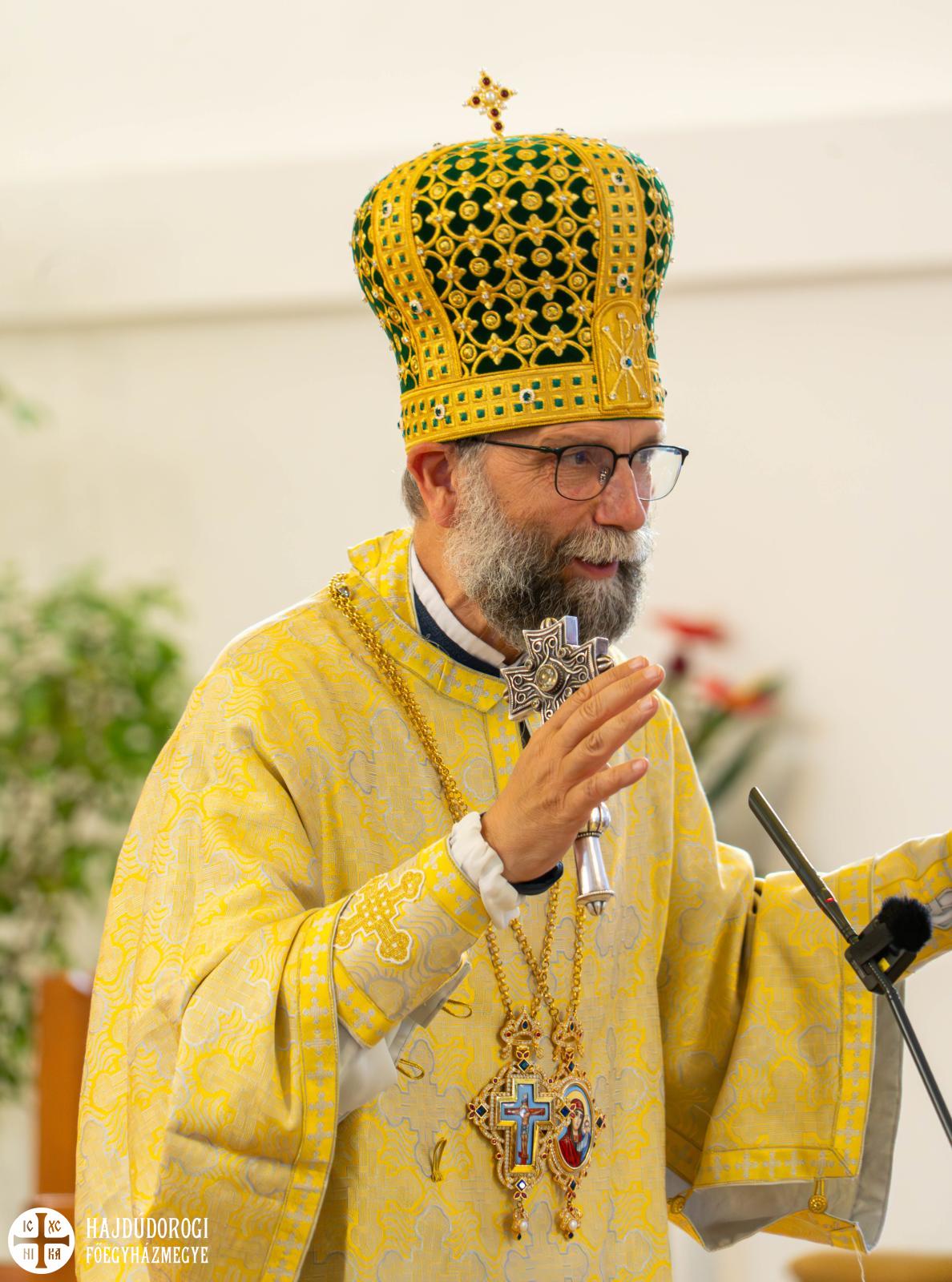„A Jóisten üzenetét szeretném ma nektek továbbítani” – kezdte Fülöp metropolita. „Tóthbegyi Zsolt tanár úr a rómaiakhoz írt levélből, illetve András diakónus atya az evangéliumból olvasta fel az aktuális üzenetet. A rómaiakhoz írt levélből azt hallhattuk, hogy a pogányoknak nincs törvényük, hogy a törvény a szívükbe van írva és erről lelkiismeretük tanúskodik. De mit is jelent ez? Mondok egy példát. Az iskolában, ha valaki nem olyan szimpi, szívesen beszólnál neki valamit. De nem teszed meg. Nem azért, mert elolvasod a törvényben, hogy nem szabad ilyet tenni. Vagy például a padtársad uzsonnáját, telefonját azért nem veszed el, mert érzed a szívedben, hogy ilyet azért mégsem csinálunk: mert az ember szívébe bele van írva, hogy mi a jó és mi a rossz” – hangsúlyozta Fülöp atya.