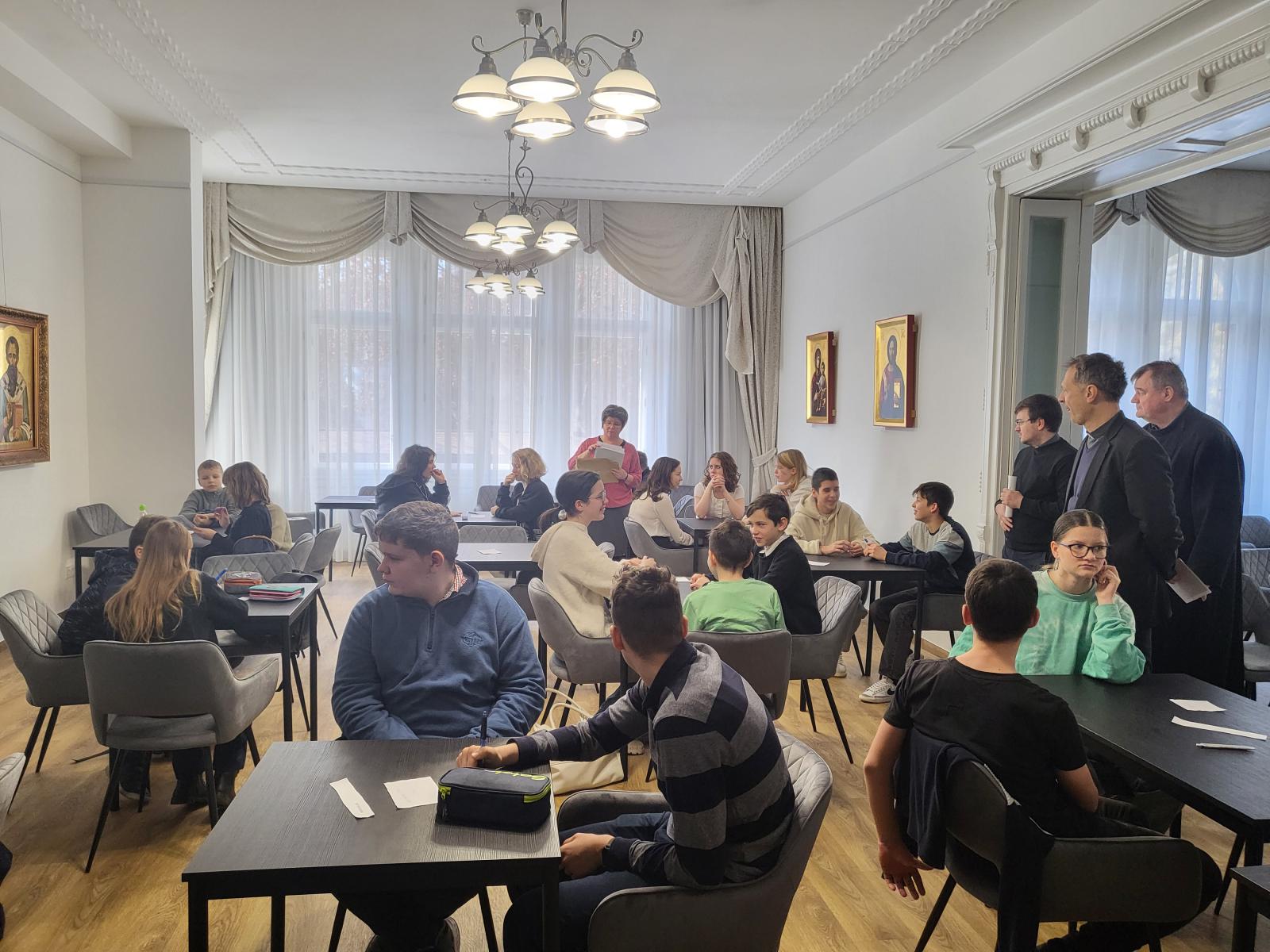 Másodjára vettünk részt a hittanversenyen (a korábbi években a nővérem és a csapattársai képviselték a Pécsi Görögkatolikus Parókiát, aztán kinőtték a korcsoportokat), ami általában egy tematikus anyag alapos elsajátítását jelenti. A tudásunk mélységéről számot adni izgalmas feladatlapok megoldásával szoktunk kerületi, ha ott továbbjutunk egyházmegyei és ha innen is továbbjutunk, országos megmérettetéseken.