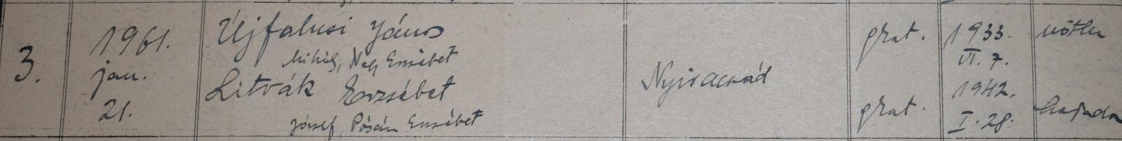 A nyíracsádi görögkatolikus templomban hatvan évvel ezelőtt, 1961. január 21-én kötött házasságot Újfalusi János és Litvák Erzsébet. Dr. Papp János parókus atya jelenlétében fogadtak egymásnak örök hűséget. A kerek évfordulót néhány nappal ezelőtt családjukkal és az egyházközség tagjaival is megünnepelte a házaspár.
