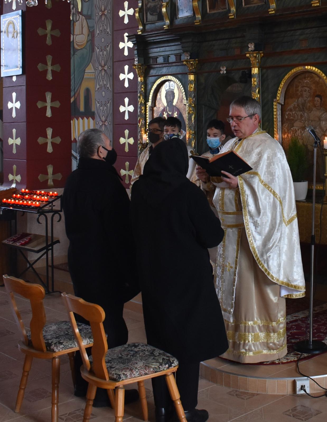 A Szent Liturgia után Tóth Elek parókus atya megköszönte nekik, hogy a közösség példaképei voltak eddigi életükben. A házasságkötésükkor Jézust hívták meg a családi életükbe, ahogyan a kánai menyegzőn az ifjú pár is meghívta Krisztust. Az Istenszülő volt a tanítójuk, akitől azt tanulták meg, hogy tegyék meg azt, amit Jézus kér tőlük. S tudták azt is, hogy az ember csak vizet tud adni, azaz egyszerű dolgokat, amit Isten jelenléte nemessé, szentté alakít át.