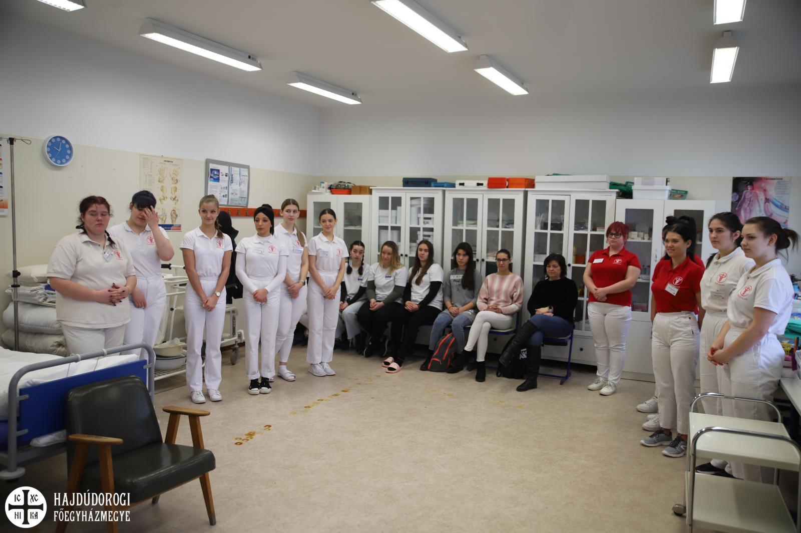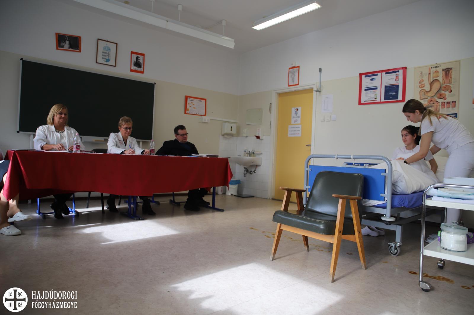 „Hazai pályán”, a debreceni Szent László Gimnáziumban megrendezett vármegyei döntőn gyakorlati szituációs feladatot oldottak meg a versenyzők, és az ehhez tartozó tevékenységeket mutatták be olyan eszközök használatával, melyeket „élesben” is használniuk kell majd egyszer.