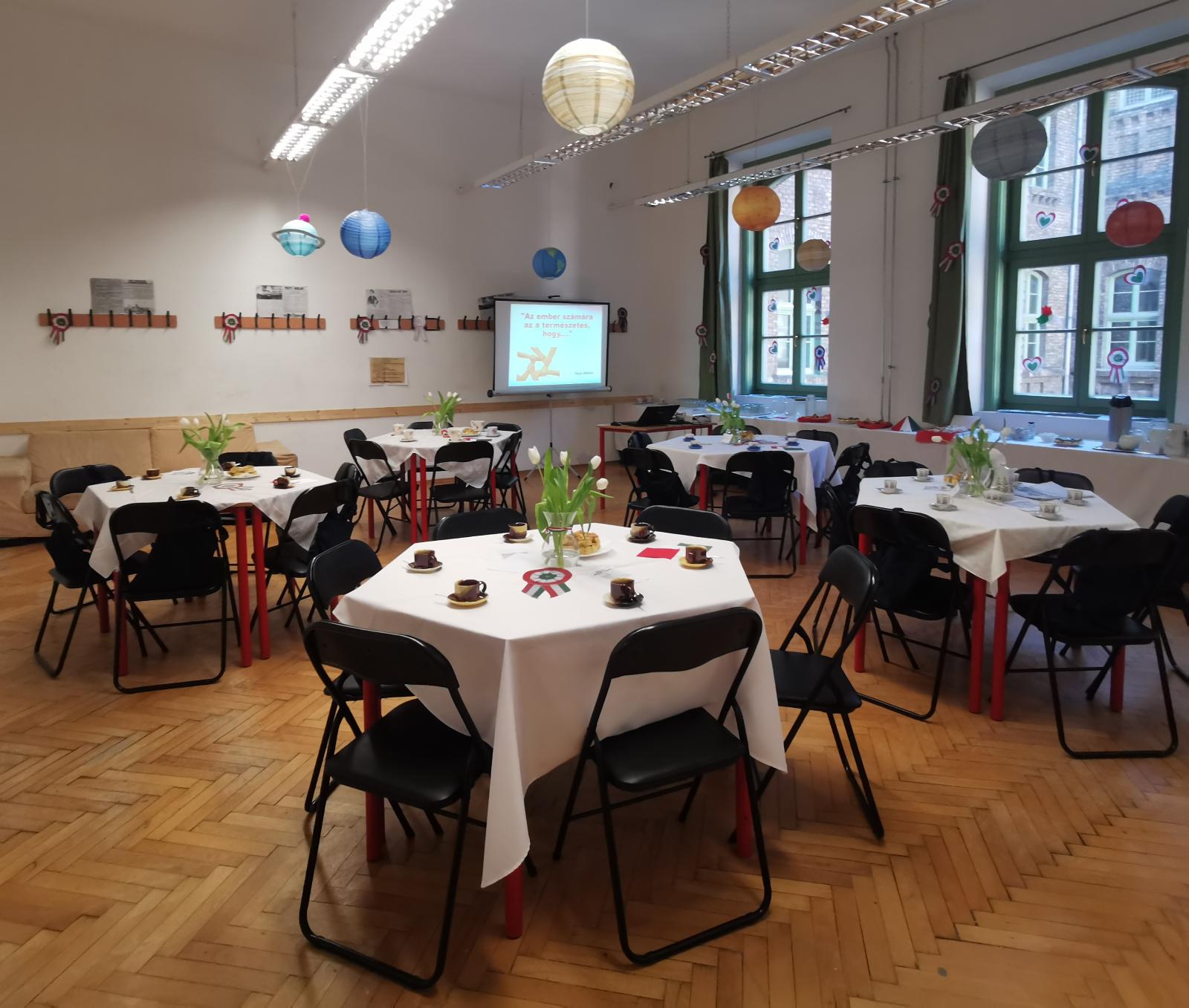 Míg a diákok dolgoztak, a tanárokat a „Pilvax Kávéházba” hívtuk, hogy ne a folyosón fel-alá sétálva izguljanak tanítványaikért, hanem egy pohár kávé és Kossuth kifli mellett beszélgessünk arról a közös munkáról, nevelésről, erőfeszítésről, melyet mi tanárok nap, mint nap teszünk a gyerekekért. Ebben dr. Papp Miklós atya volt segítségünkre, aki érdekfeszítő, színvonalas előadásával segített minket a műhelymunkában, a humort sem hagyva otthon.