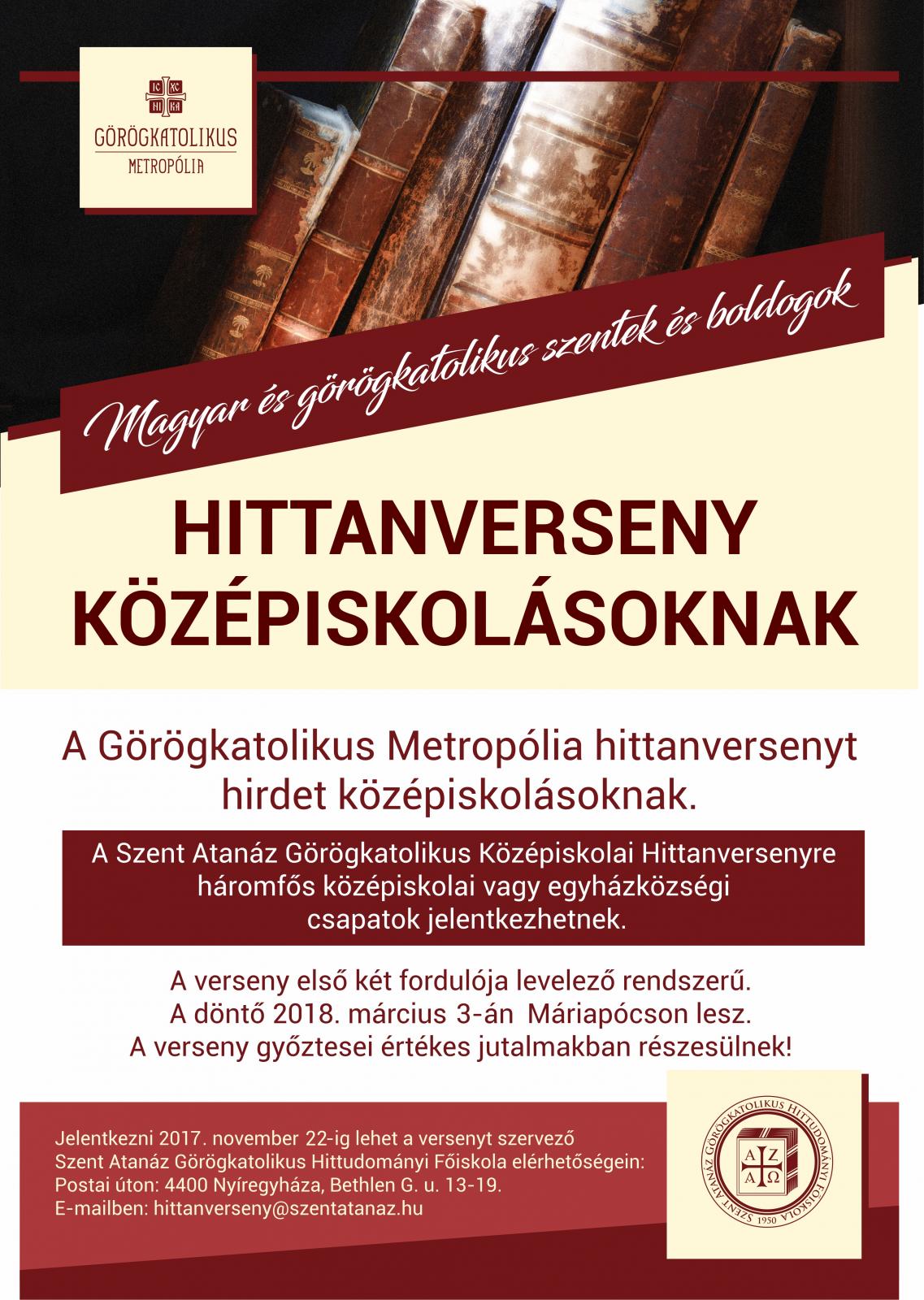 A Görögkatolikus Metropólia újra megrendezi a középiskolásoknak szóló hittanversenyét. Háromfős középiskolai vagy egyházközségi csapatok jelentkezhetnek. A megmérettetés első két fordulója levelező rendszerű. A döntő pedig 2018. március 3-án lesz Máriapócson.
