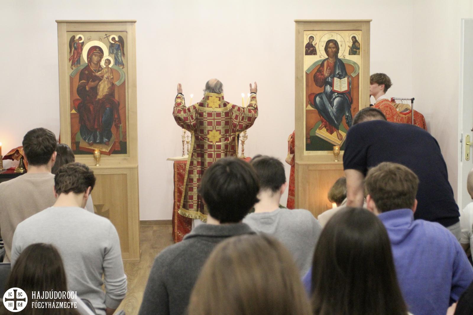 Kocsis Fülöp érsek-metropolita tartott előszenteltek liturgiáját az Aranyszájú Szent János Kulturális Központban március 12-én este. A részben egyetemi kollégiumként is működő Aranyház kápolnáját megtöltötték a fiatalok.