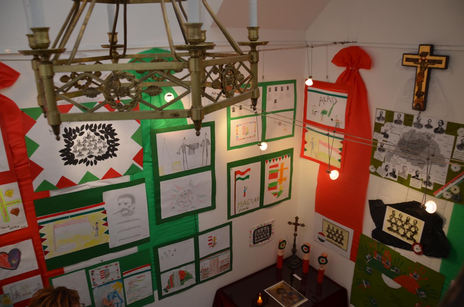 Sőrés István hozzátette: nagyon meghatotta az, hogy a gyerekek a saját életkoruknak megfelelően meg tudták ragadni a tizenhárom aradi vértanú emlékét és nagyon jól adták vissza a magyar golgotának a történetét. Megható volt olvasni a tizenhárom tábornok utolsó mondatait, melyek nagyon tanulságosak. Beszédét folytatva a tizenhárom aradi vértanú emlékét és a történelmi hátterét hozta közelebb a hallgatósághoz. A kiállítás „Hőseink és Vértanúink” címet kapta.