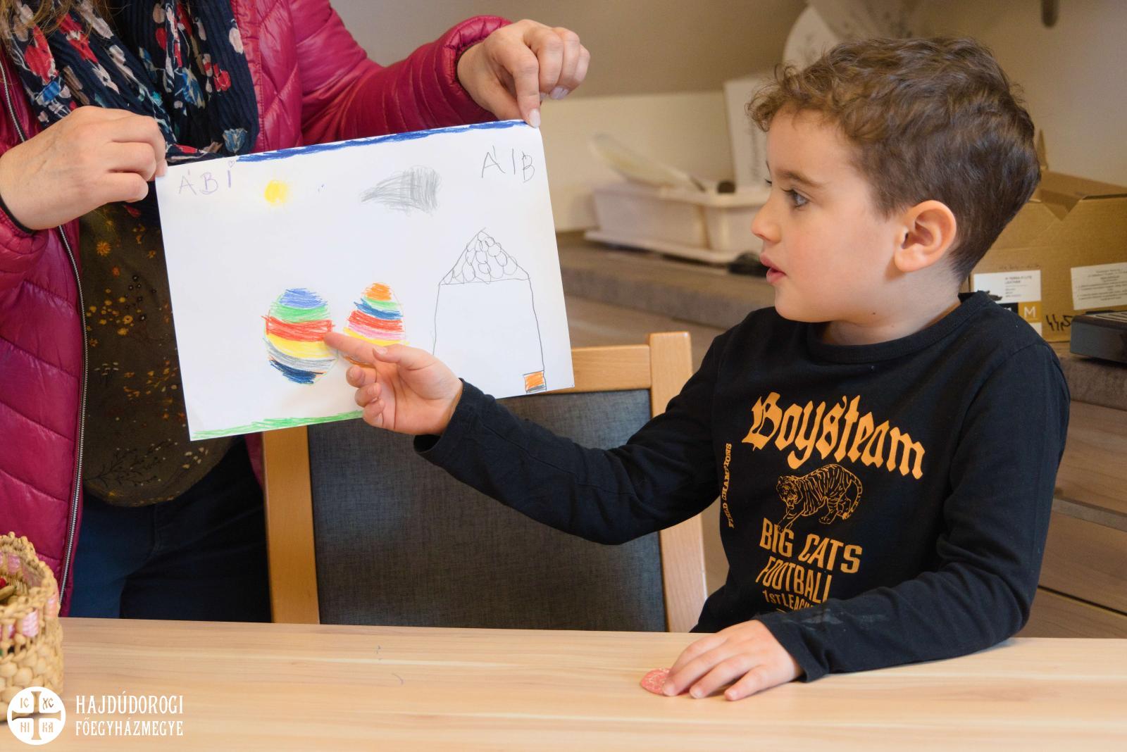 A versenyen közelgő ünnepünkkel kapcsolatos alkotások készültek. Húsvéti tojások, terített asztalok, családrajzok jelentek meg a papíron. Többen pedig a templomot és a megfeszített Jézus Krisztust is lerajzolták.