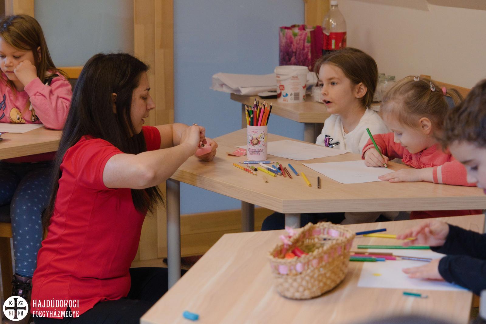 Délelőtt Vígkedvű Mihály utcai görögkatolikus óvodánkból érkezett két csoport, összesen harminc gyermek a szolgáltatópontra. Az ovisokat Jaczkó Dániel, a főegyházmegyei karitász vezetője köszöntötte, röviden összefoglalva a szolgáltatópont munkáját. Elmondta, hogy ezen a helyen ruhaneművel és lábbelivel is tudnak segíteni a rászorulóknak és gyerekeiknek.