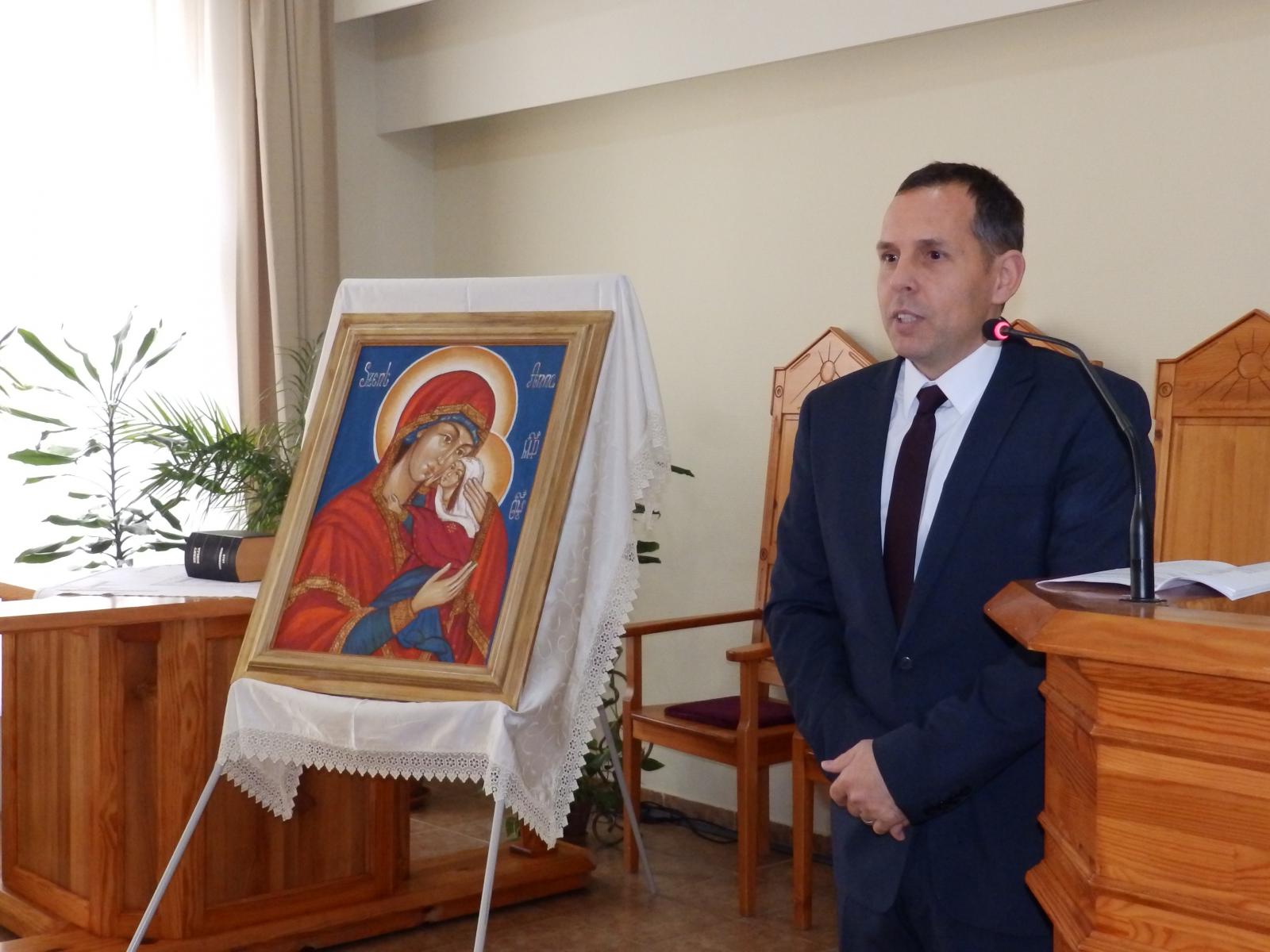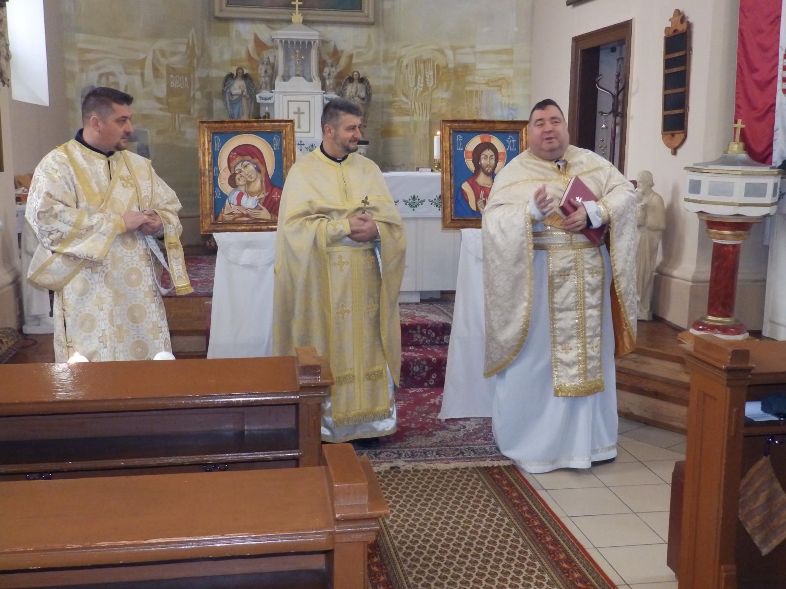 Terdik János atya, a Főegyházmegye pasztorális helynöke és Lukács Imre parókus atya vezetésével hálaadó Szent Liturgiával kezdődött a nap, melynek részeként két ikont is megszenteltek.