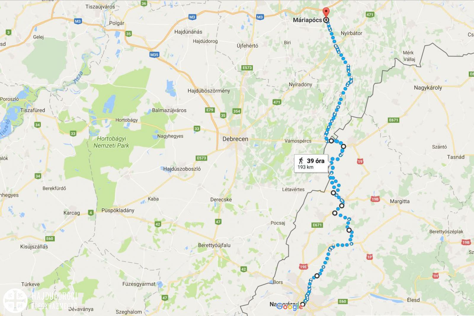 Útvonal: Nagyvárad - Szentjobb - Székelyhíd - Nyírábrány - Encsencs - Máriapócs