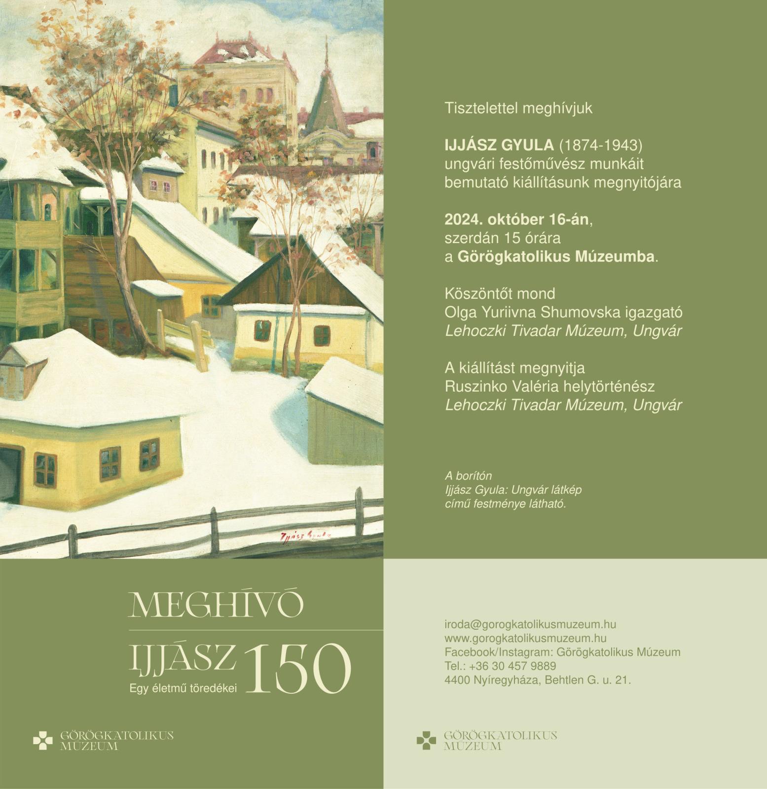 Ijjász Gyula egy elfeledett ungvári festőművész, Hollósy Simon tanítványa, akire munkássága kezdetén Munkácsy Mihály volt nagy hatással, és aki fejlődése során eljutott a 20. századi modern festészetig. Életműve szinte teljesen megsemmisült. A most nyíló, a Magyarországon fellelhető munkáiból összeállított kiállítás hiánypótló. A kiállítás 2025 január 31-ig lesz megtekinthető. Ez kiállítás az ungvári Lehoczky Tivadar Múzeummal kötendő szakmai együttműködés első állomása.