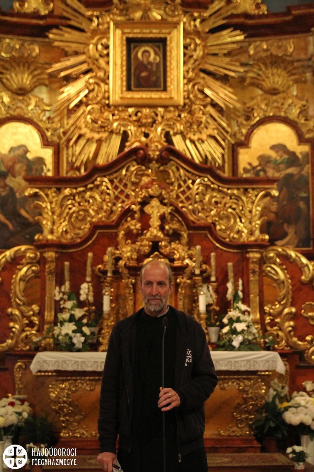 A tanúságtétel után következett a Paraklisz, a diákok és kísérőik együtt vonultak át és töltötték meg a Kegytemplomot, ahol már Orosz István kegyhelyigazgató várta őket. Most is vidám és lelkesítő gondolataival.