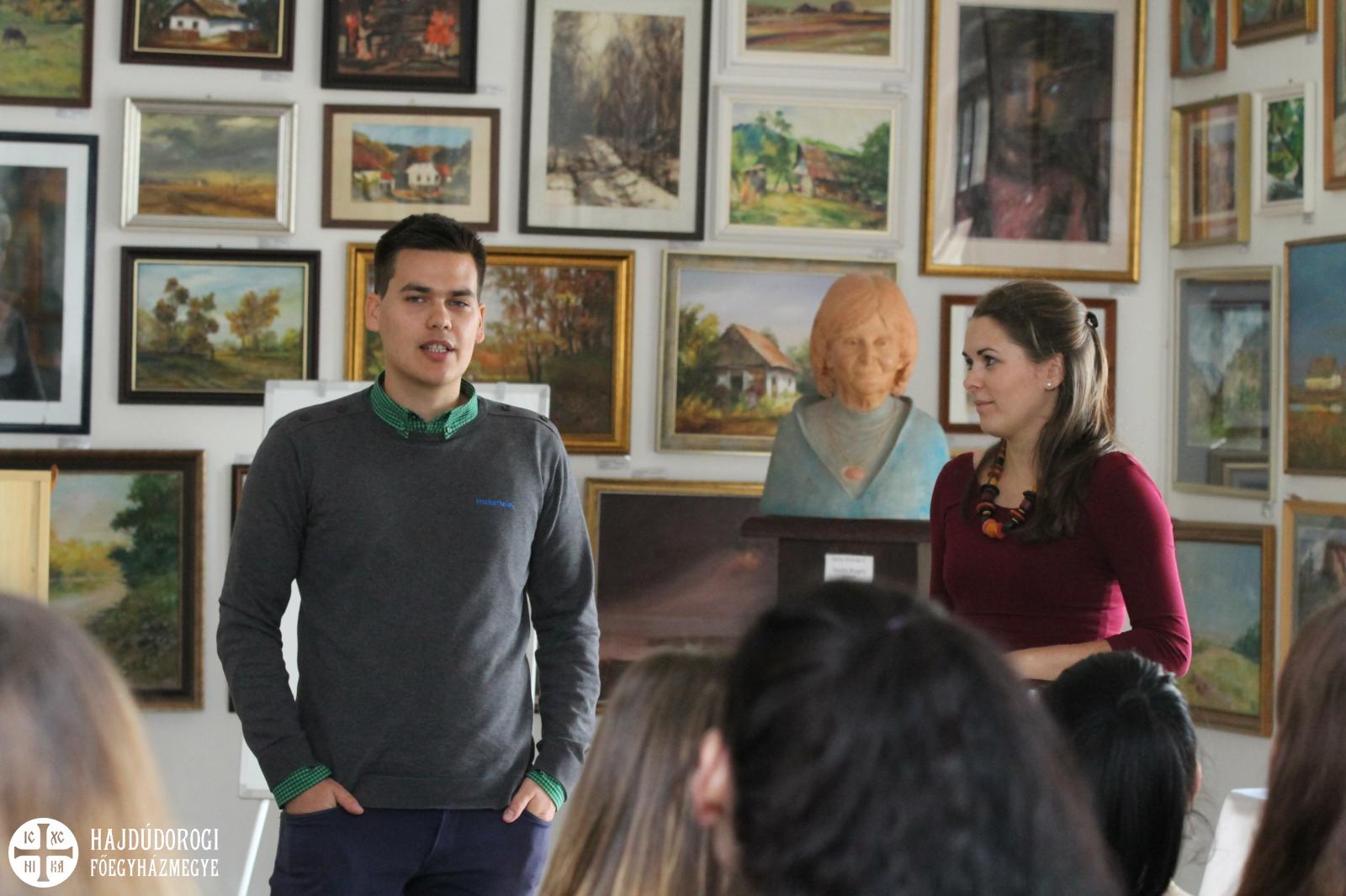 Grunda Marcell és felesége, Eszter a külföldi élményeiket osztották meg az érdeklődőkkel, de leginkább arra hegyezték ki a dolgot: hogy merjenek neki vágni a külföldi nyelvtanulásnak, de később ezt itthon kamatoztassák.