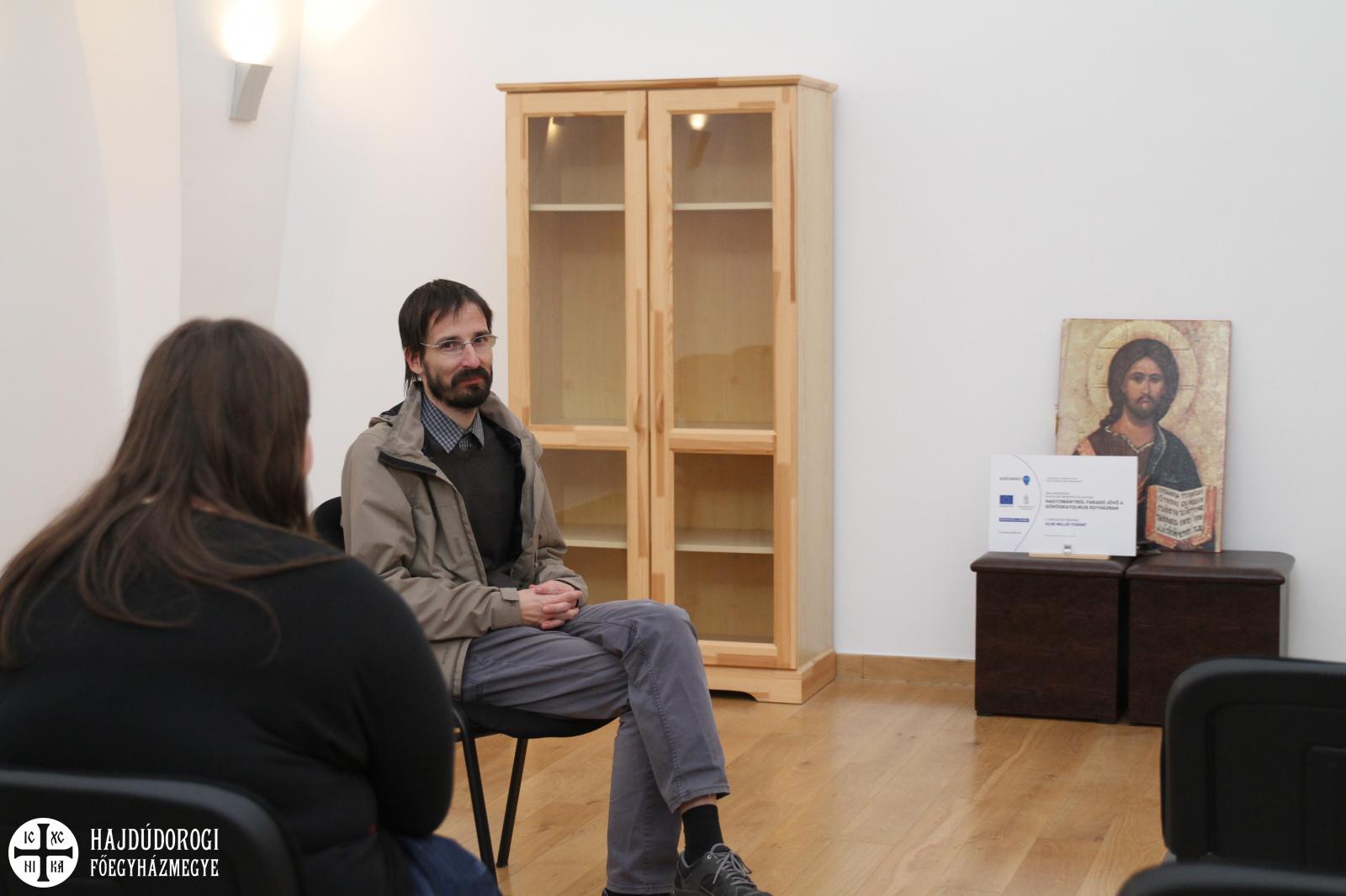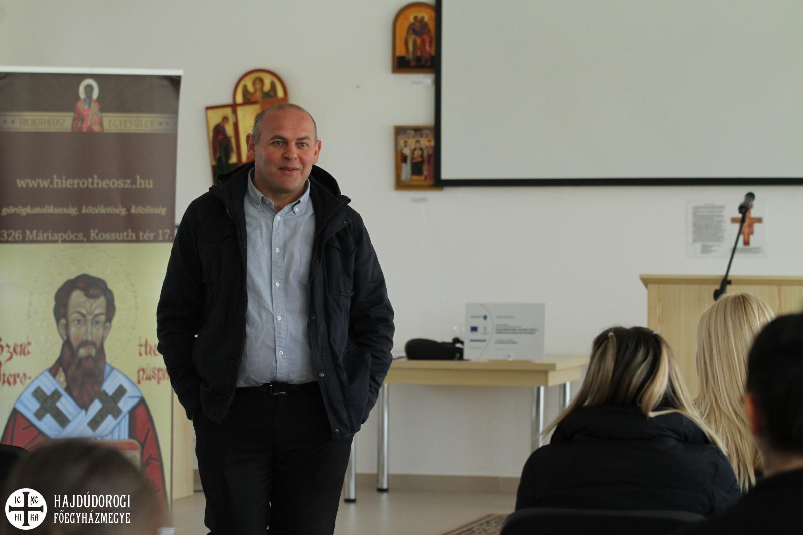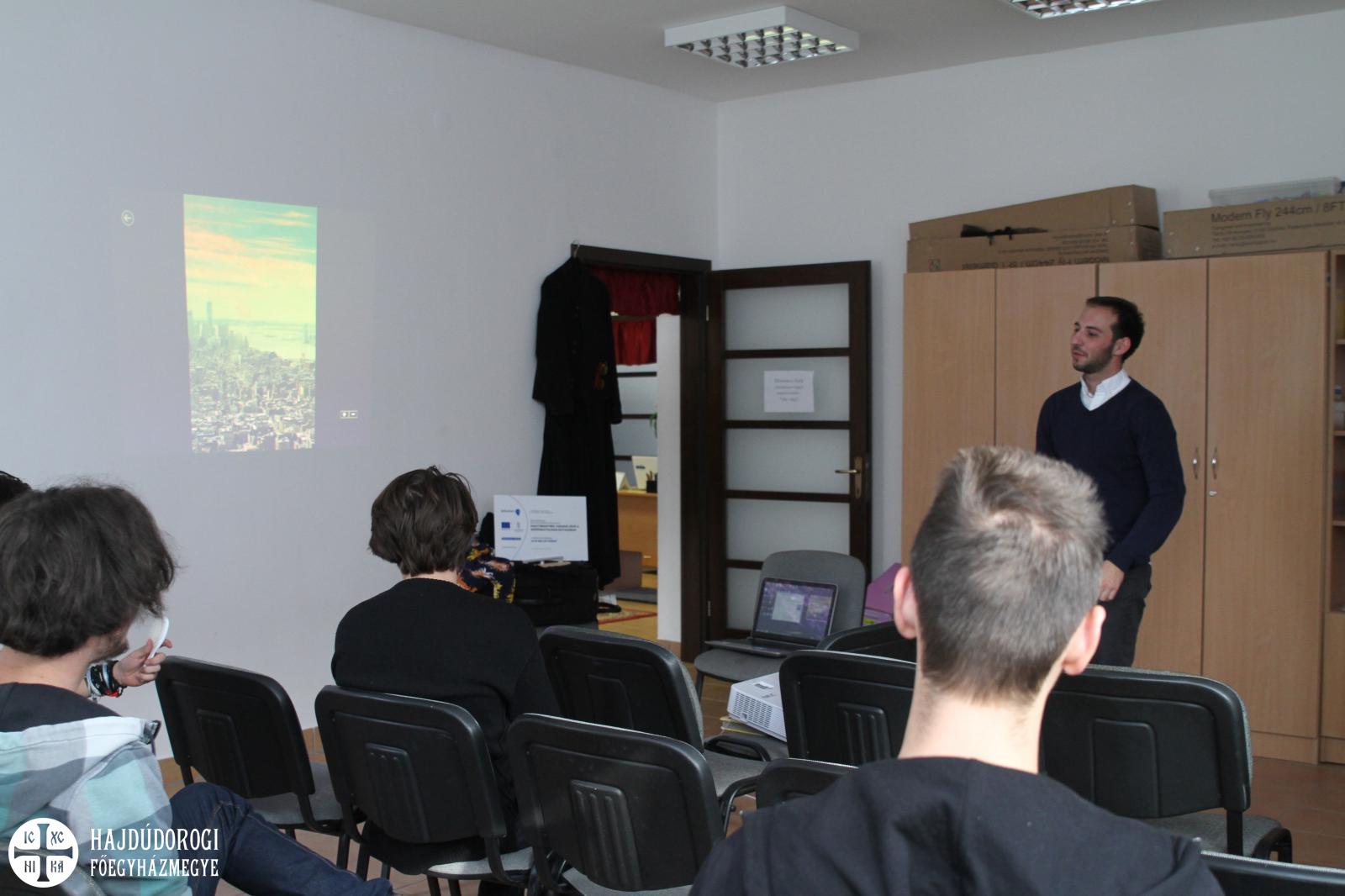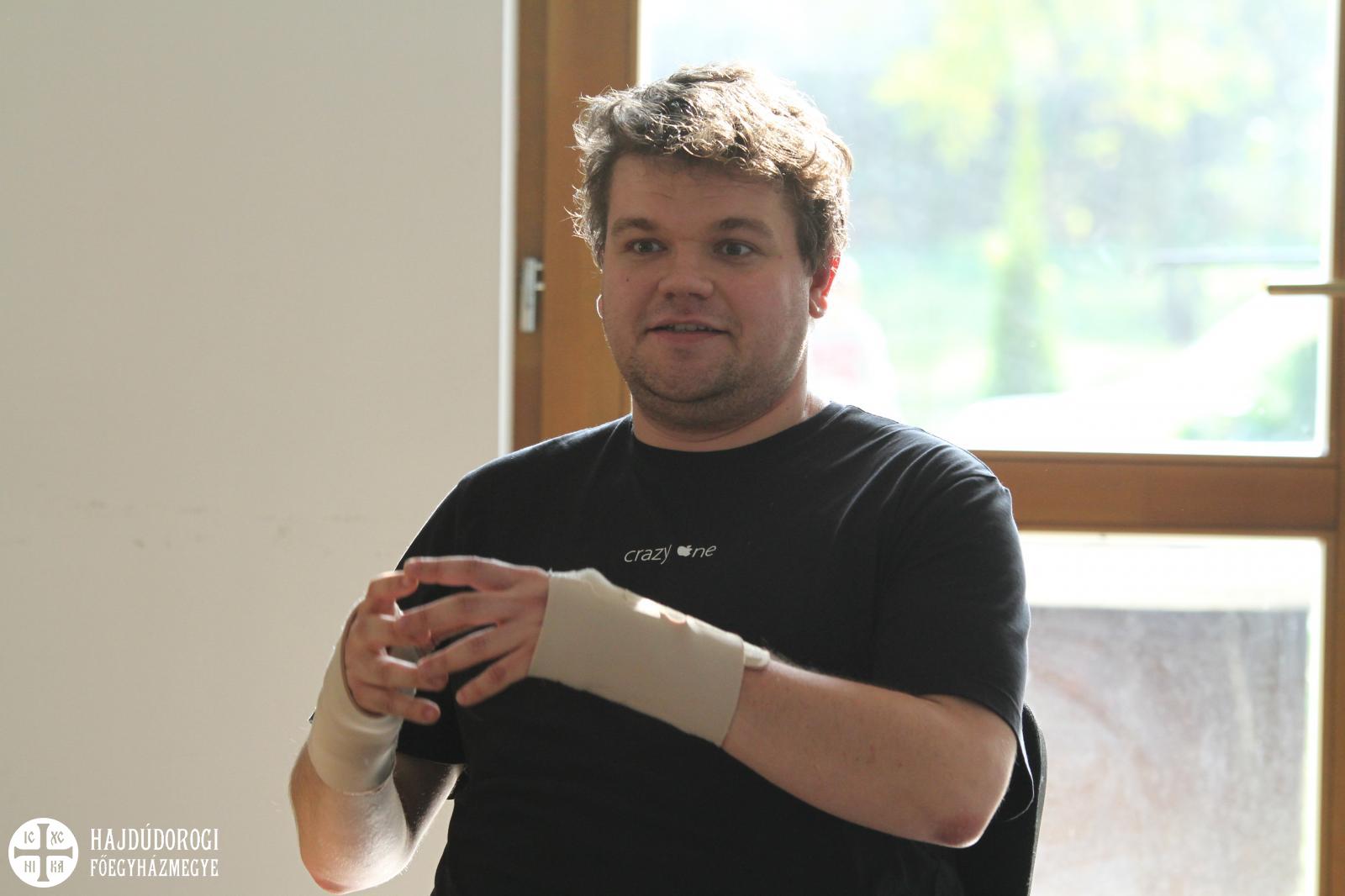 A Paraklisz után már éppen beköszöntött az ebédidő, majd jöttek az előadások a tematikus műhelyekben. Az informatika területéről Katona Tamás beszélt a fiataloknak, akik elképedve hallgatták legújabb fejlesztéseit és munkáit.