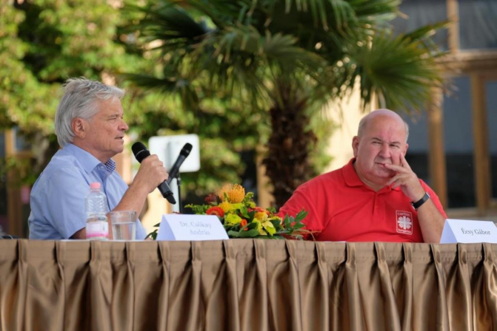Écsy Gábor – bemutatva a Katolikus Karitász tevékenységét – kiemelte, hogy a szervezet Magyarország szinte minden településén jelen van azzal a küldetéssel, hogy munkatársai közel vigyék a krisztusi szeretetet az emberekhez, felemelve őket, amikor bajba kerülnek. Az elnök bemutatta a határon túli szolgálatukat is, kiemelten szólt az orvosmisszióról, mely a kórházmisszióból nőtt ki. Kezdetben kórházi ellátás javítását célzó infrastrukturális és eszközbeli támogatást nyújtottak, az utóbbi években pedig orvoscsoportjuk végez szűréseket Kárpátalján és a Délvidékén.