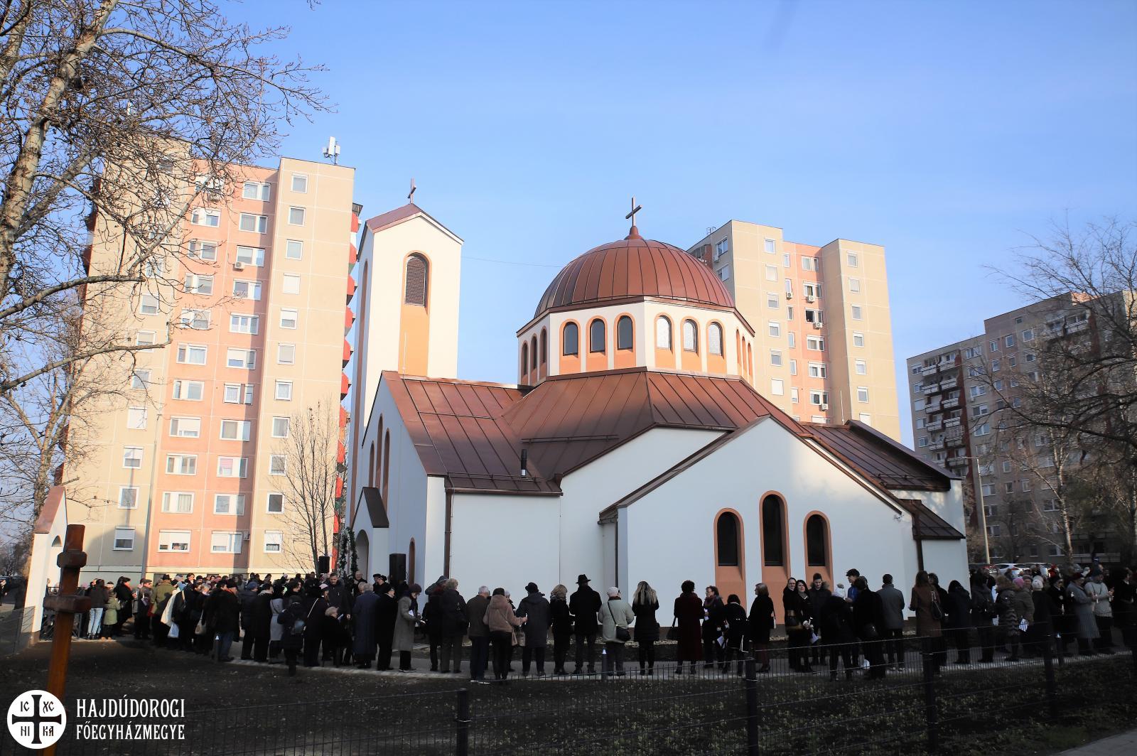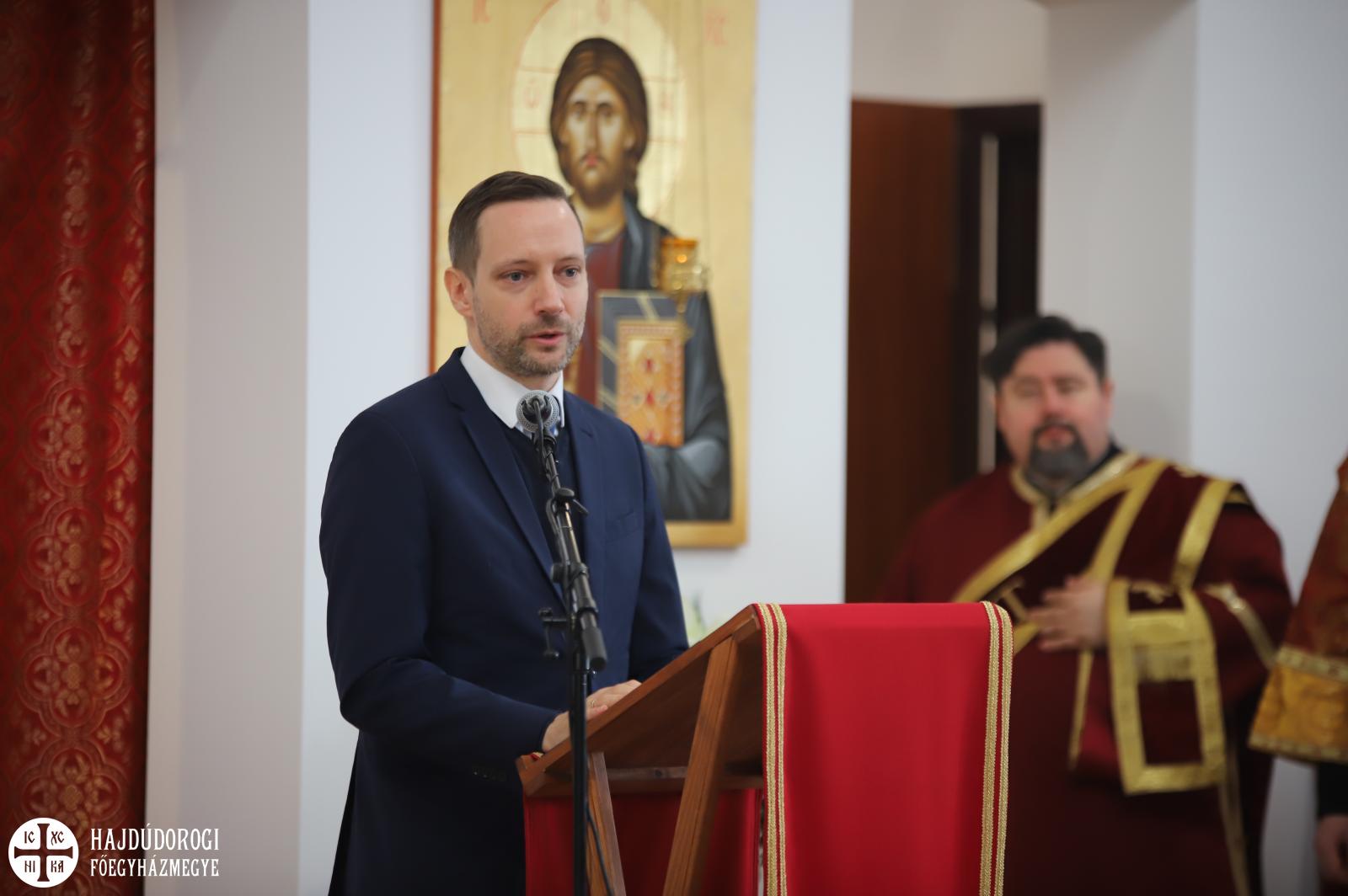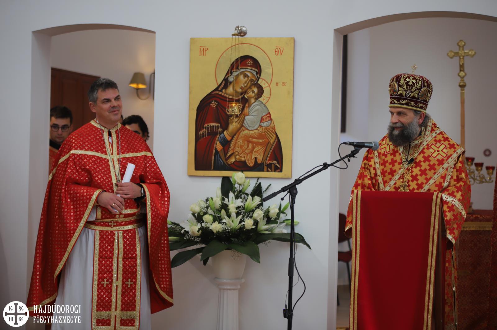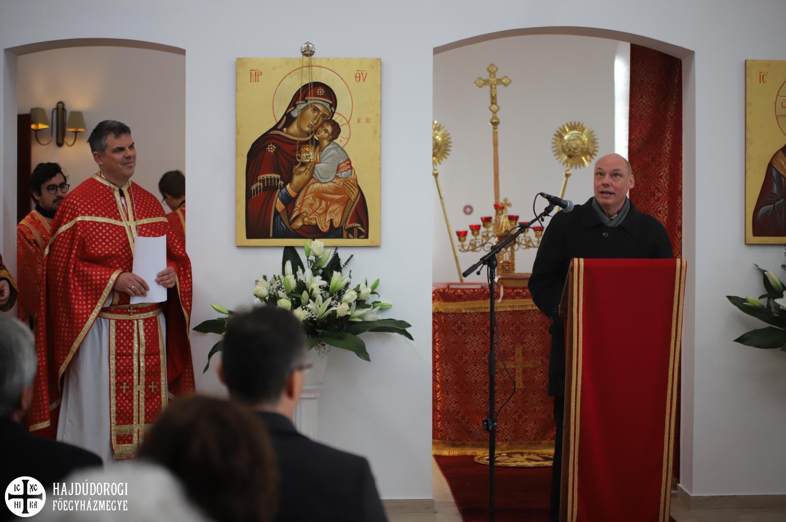 A gyülekezet nevében Szilvási János világi elnök mondott köszönetet, s emlékeztetett: volt idő mikor összeférhetetlen volt az a gondolat, hogy görögkatolikus templom épüljön a modern lakótelep szívében, most pedig milyen szépen beleolvad ebbe a környezetbe. Úgy gondol rá, mint egy kis ékszeres dobozra, hiszen látja lelki szemei előtt, hogy milyen lesz kifestve, berendezve, benne tele élettel. – Most még kissé csupasz, de aki tudja, hogy milyen egy görögkatolikus templom belülről az látja azt is, amit én: az ikonosztaziont, a festett kupolát és falakat, padokat, gyertyatartókat, érzi a tömjén illatát. Ez nem vízió, és ha az egyházközségen múlik meg is fog valósulni, hiszen lehet pandémia, háború vagy válság az egyházközség erősebb, mint valaha.