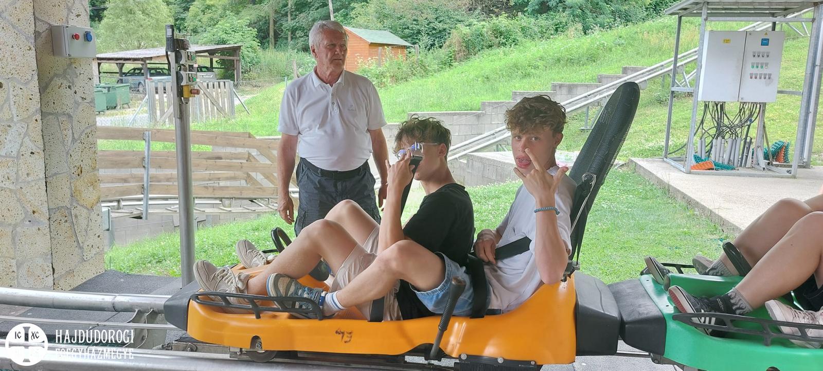 Csütörtökön a természet szépségeiben szerettek volna gyönyörködni a táborozók, a Háromhutát átölelő erdőket szerették volna bejárni, de sajnos az időjárás közbeszólt. Kedvüket azonban ez sem szegte, hiszen Töviskes Mária mentálhigiénés szakemberünk egy kis belső túrára hívta a fiatalokat. Mindenki a saját érzéseivel indult útnak, az életük körüli utazás, zarándoklat során megnézték, hol tartanak most, és hol találkozhatnak Istennel. A játékos, önismereti feladat után közkívánatra Sátoraljaújhelyre látogatott el a csapat, ahol a Zempléni-kalandparkban pattantak fel a bobra.