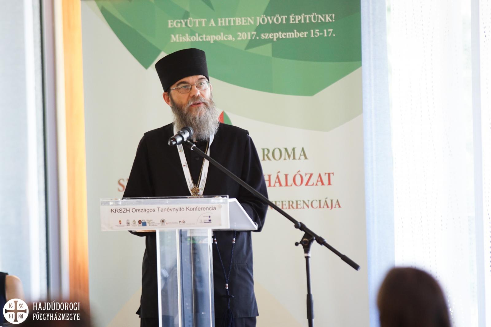 A Keresztény Roma Szakkollégiumi Hálózat országos tanévnyitó konferenciája szombaton délelőtt folytatódott. Indulni csak az tud, aki hisz, és reméli is, hogy célba ér. Hisz abban, hogy van értelme életének, tanulmányainak és hisz Istenben is, lelkesítette a hallgatókat Orosz Atanáz, miskolci püspök tanévnyitó beszédében. A keresztény ember egészséges önbizalma mellett, Isten kegyelmére épít. „A keresztény roma szakkollégiumok hálózata az Istenre építők szövetsége”, mondta a főpásztor, majd Nagy Szent Bazil tanítására hívta fel a hallgatóság figyelemét: a "szeretet által tevékenykedő hit" kereszténységünk és közösségeink alapja, irányadója.